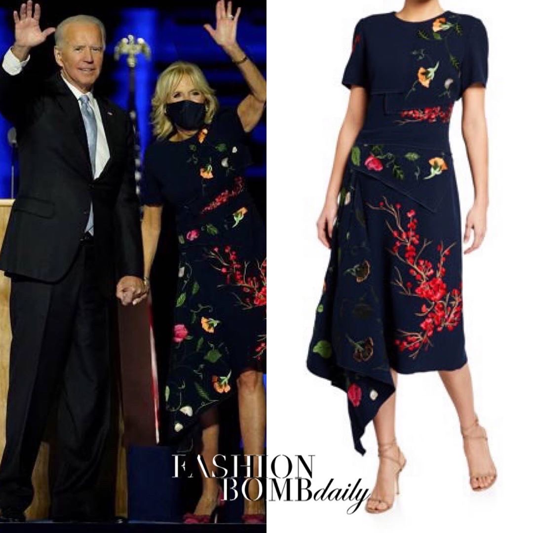 Celebrity Style Dr. Jill Biden Wears a Black and Red Floral Oscar de la Renta Dress for President Joe Biden’s Victory Speech Posted by Posted on Nov 8, 2020 showMessage = false, 2000)" > Copied to clipboard! Professor #FLOTUS Dr. Jill Biden posed with President-elect Joe Biden wearing an Oscar De La Renta dress (sold out) at the victory speech in Delaware. We’re predicting lots of prints from our First Lady for the next 4 years. What say you? 📸Getty