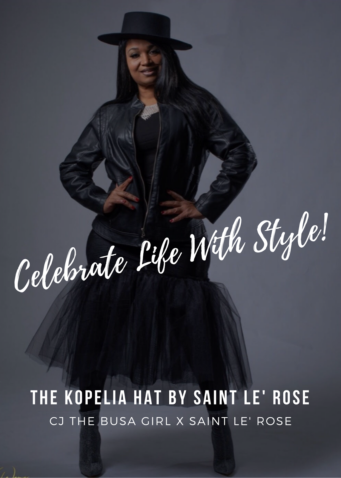 CJ The BUSAGIRL is “Celebrating Life with Style” Wearing her Saint Le’ Rose KOPELIA Boater Hat by Stylist & Hat Designer, Loretta Rose.