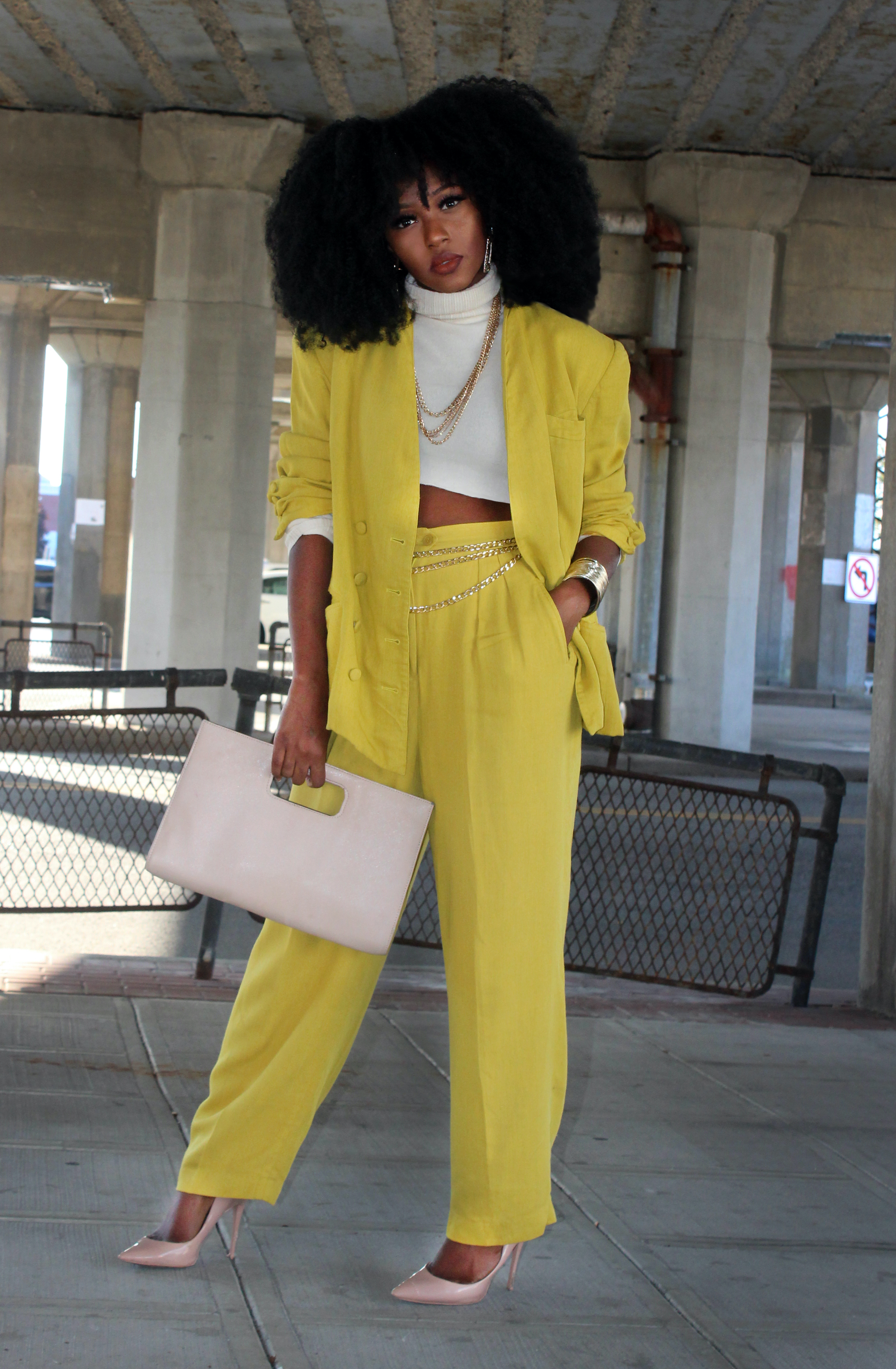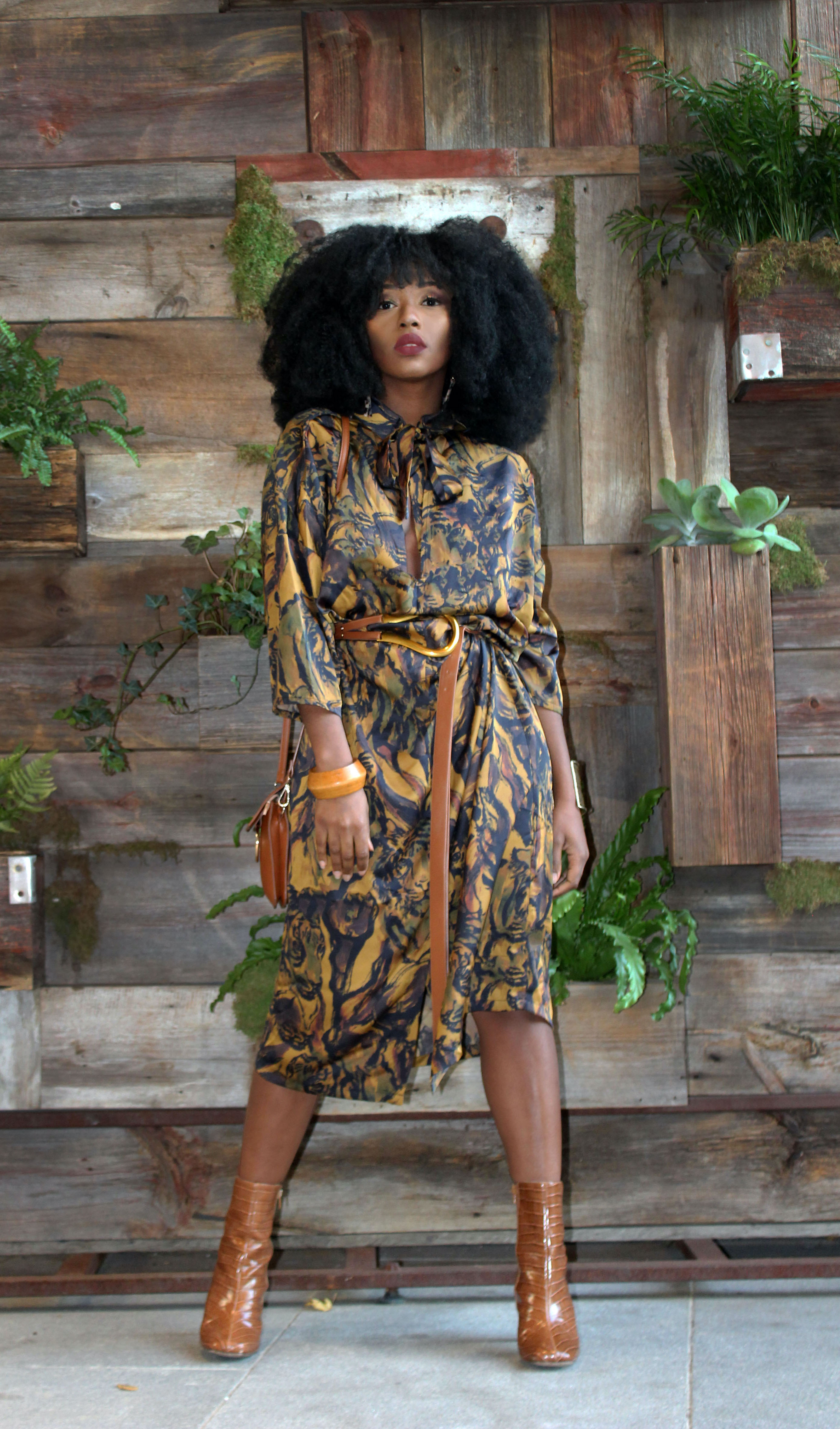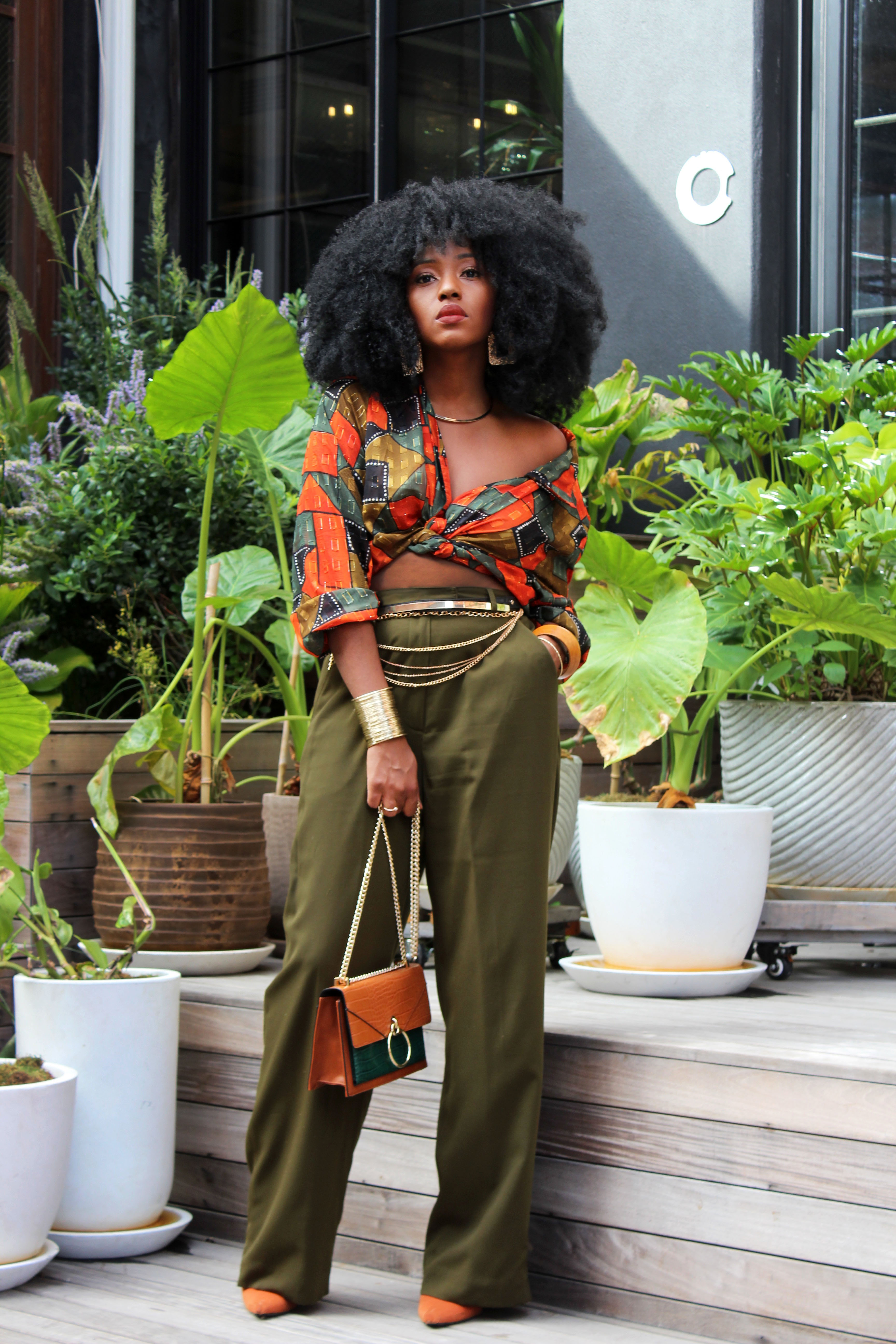She writes, “I would describe my style as big, fearless and bold like my hair. I am not afraid of color and print. I love to find vintage clothing and revamp it in my own image.“