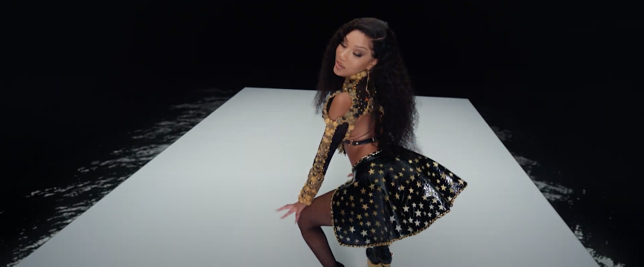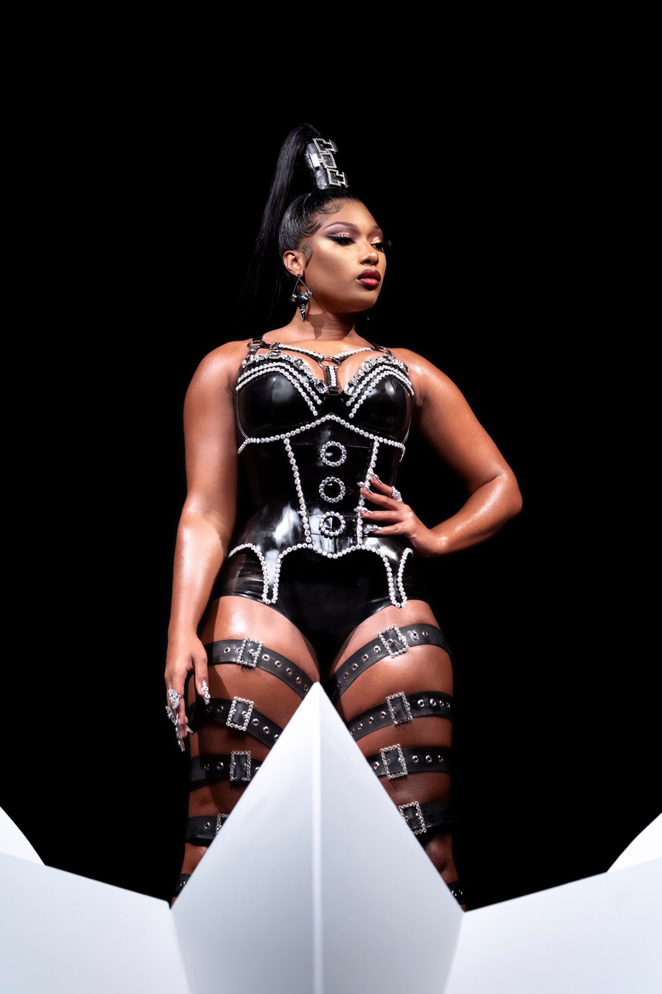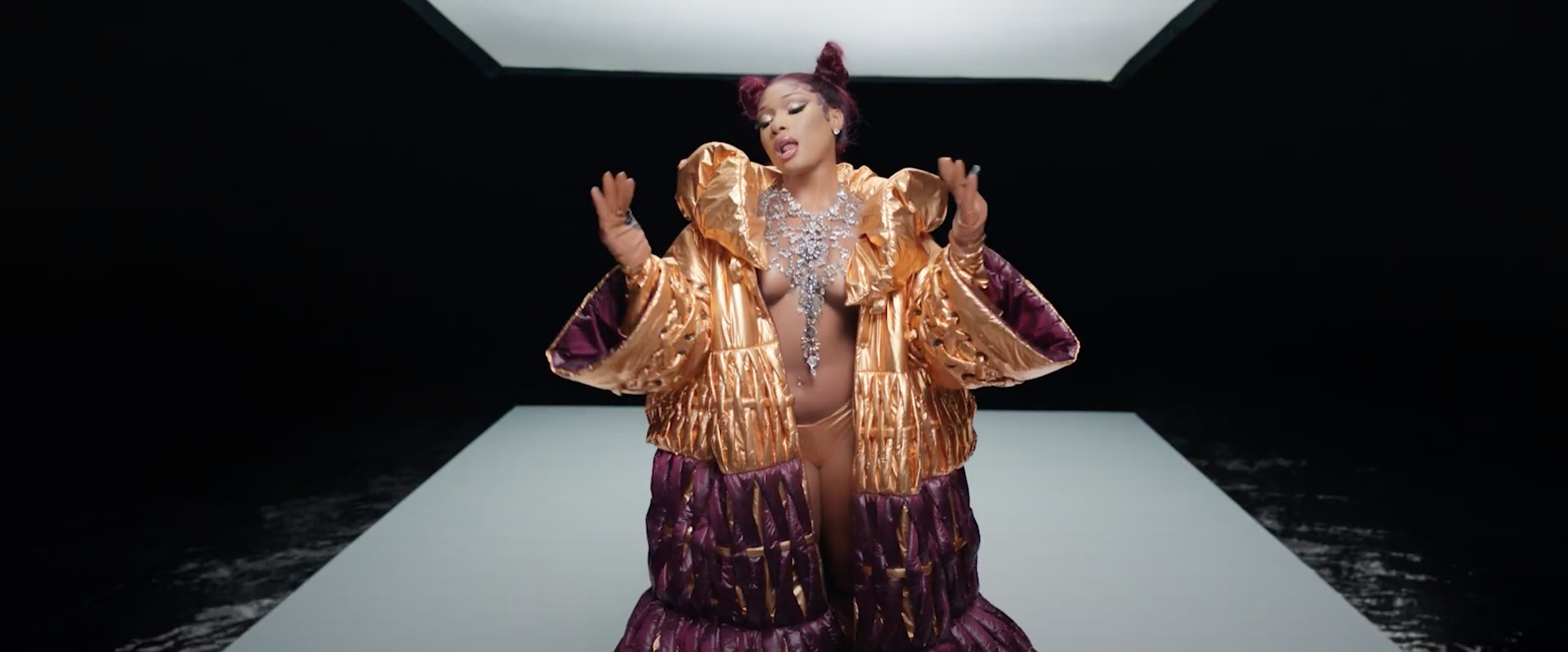 Megan Thee Stallion opened the video in Ashton Michael pieces.
