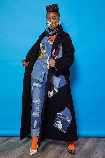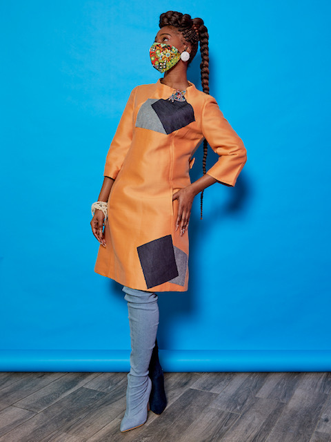 Haynes continues his winning streak with his latest collection, ORA – The Orange Navy Collection, which features Haynes’s signature patchwork, cast on ankle length wool coat, smart dresses, and ponchos in orange, cobalt blue, navy, black, and denim.