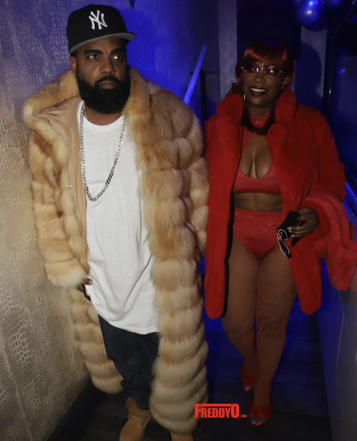 Kandi Burruss channeled Lil Kim’s red look from her “Crush On You” video, styled by Jeremy Haynes. Her hair was done by Jodie Rowlands with makeup by Tae Rene’. Todd Tucker dressed up like Diddy for the birthday bash.