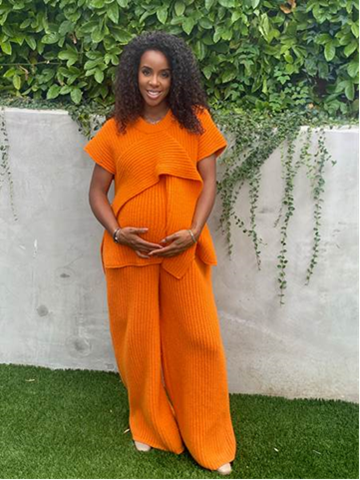 #KellyRowland announced her virtual #BabyShower wearing a @christianwijnants FW 2020 knit set styled by @kjmoody.