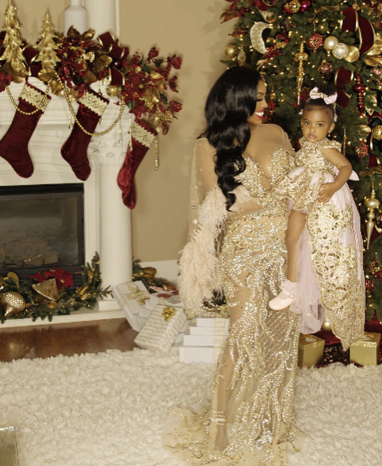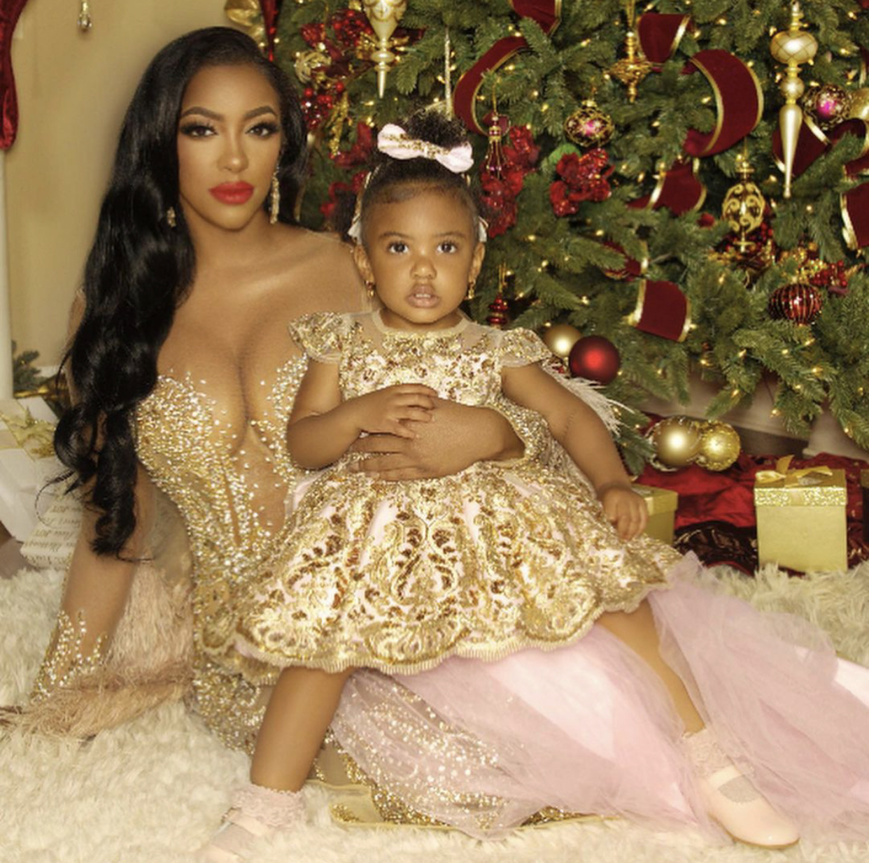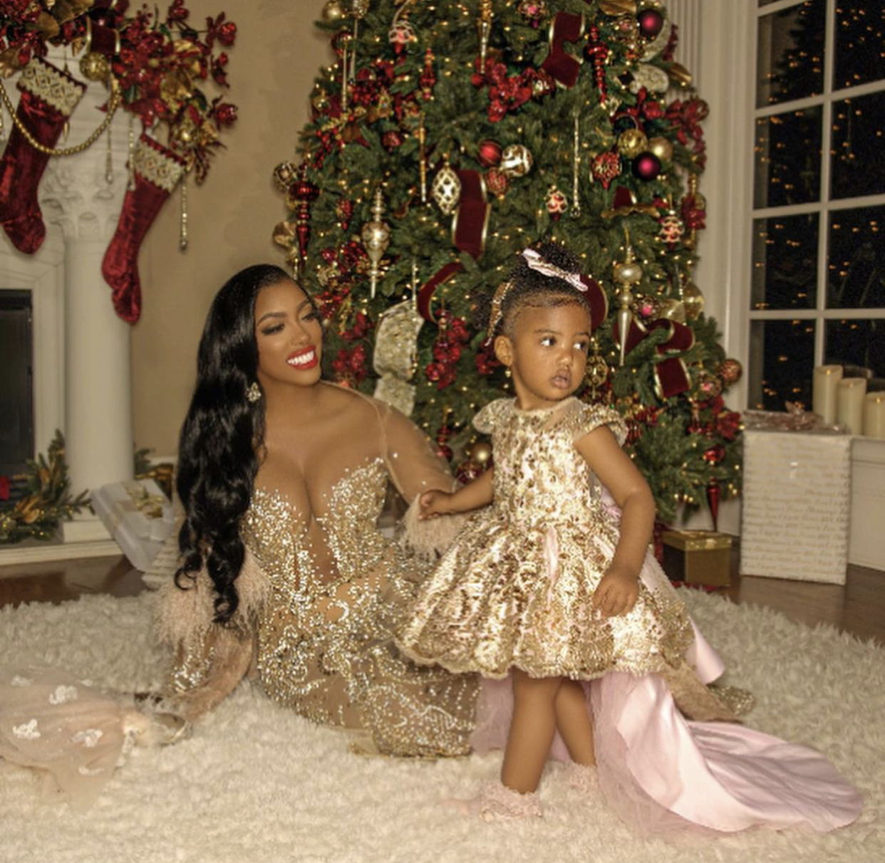 This Instagrammer was referring to Porsha Williams‘s most recent holiday photoshoot with her daughter Pilar Jhena McKinley. Porsha Williams posed in a dress by The Ivy Showroom while her daughter Pilar wore a $395 Ada Aziza “Princess Jasmine Custom High Low” dress.