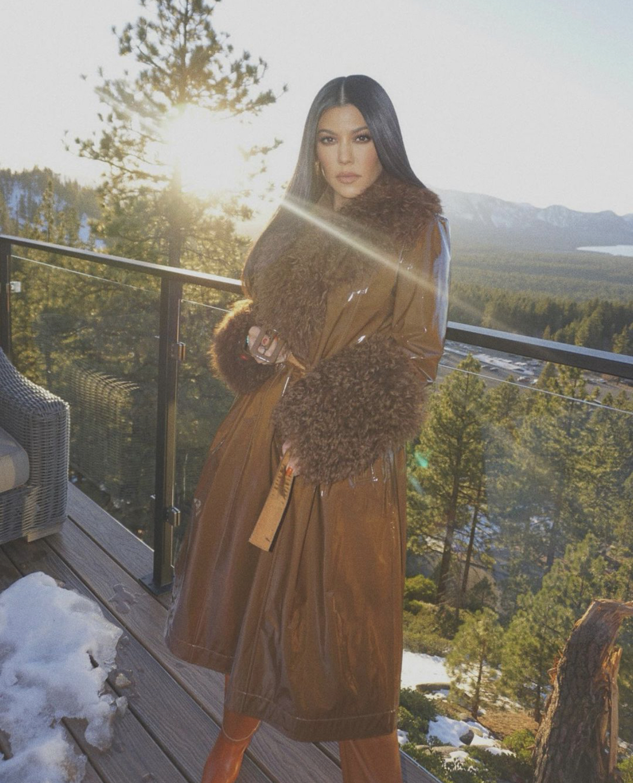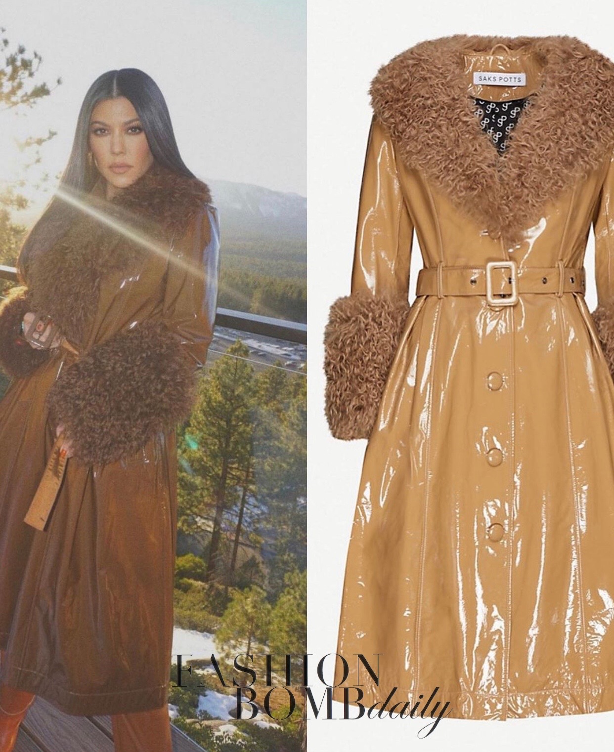 Kourtney Kardashian wore a $1,250 Saks Potts Foxy Shearling Coat in walnut, styled by Dani Michelle.