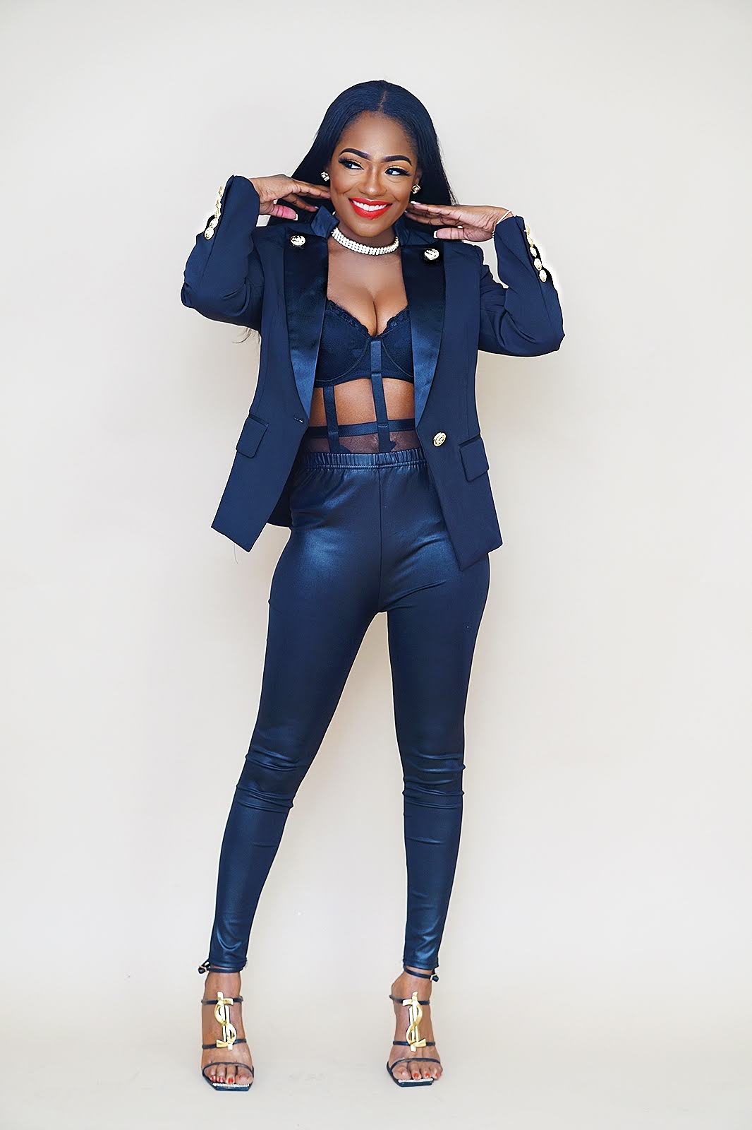 Pieces like the ‘Boss AF Tuxedo Suit by Bridney Winfrey’ shows off the femininity of a woman by having shoulders and midriff out on the left, and a full tuxedo coverage on the right. The tuxedo can be glammed up and bossed up like Jessica Rich did for her reality show intro (tuxedo blazer, bodysuit, and heels).