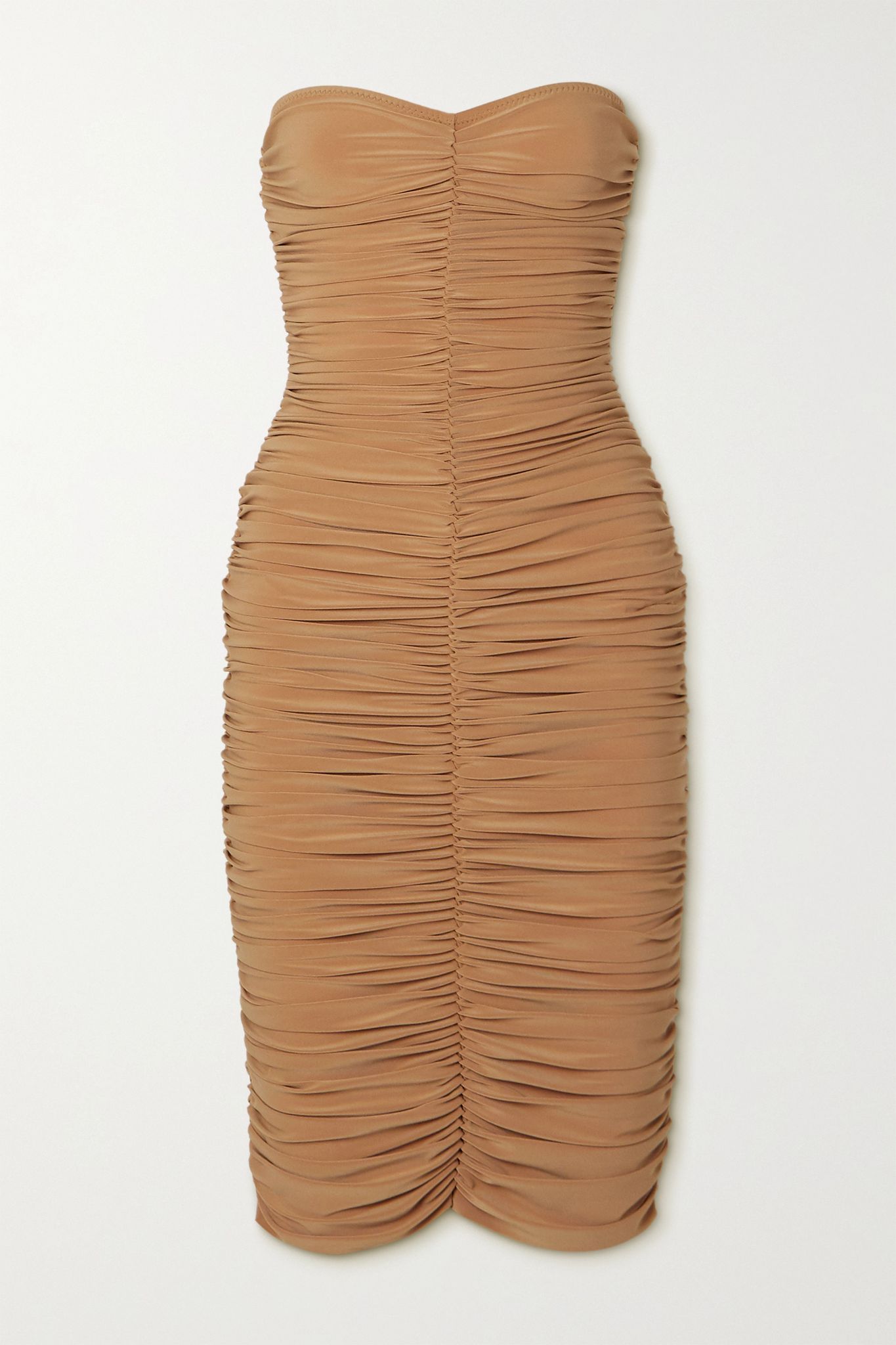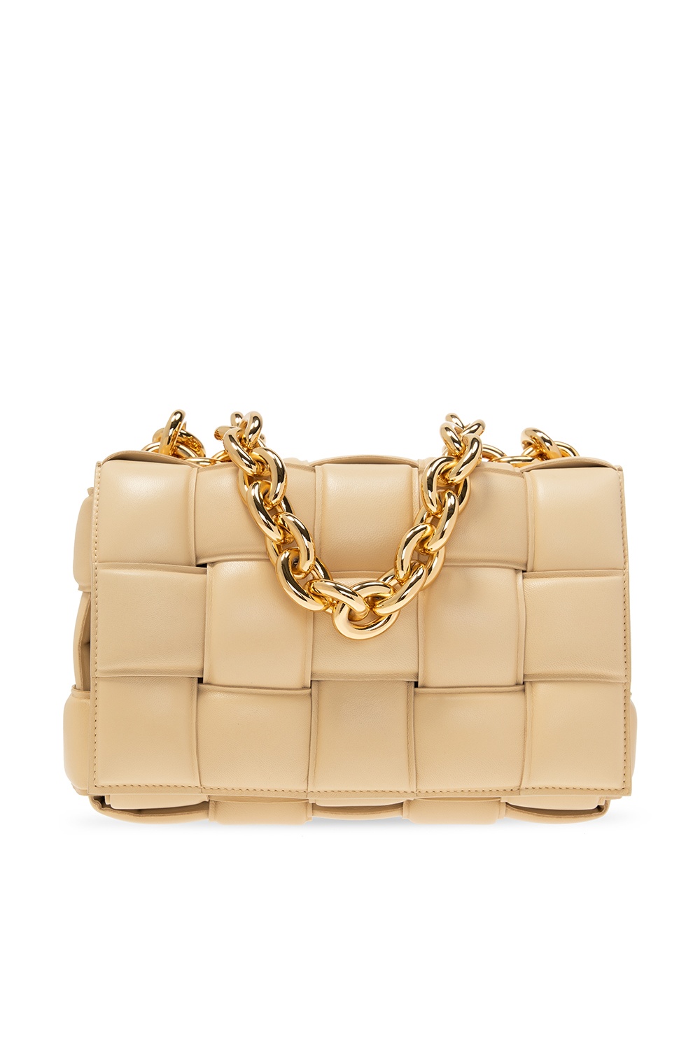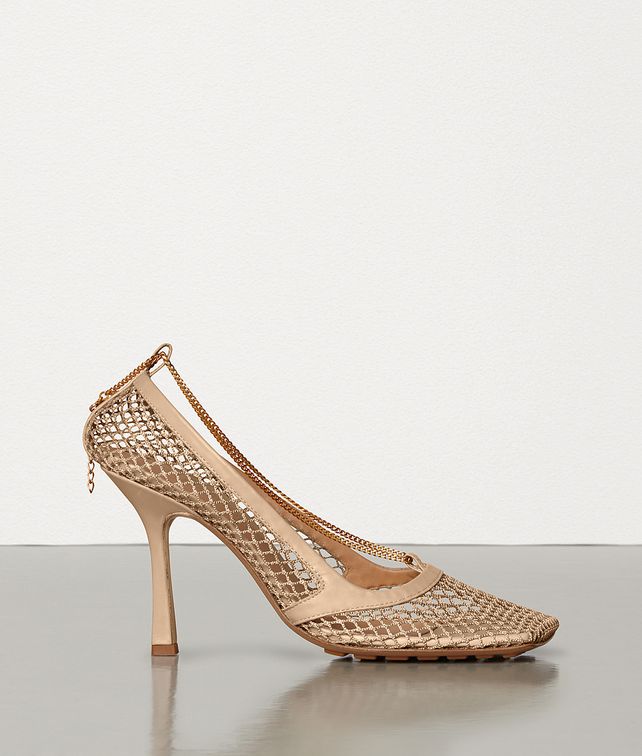 JT was spotted wearing a Helmut Land Shearling Coat and Norma Kamala Slinky to Knee Dress paired with Bottege Veneta’s Chain Cassette Bag and Mesh Square Toe Pumps.
