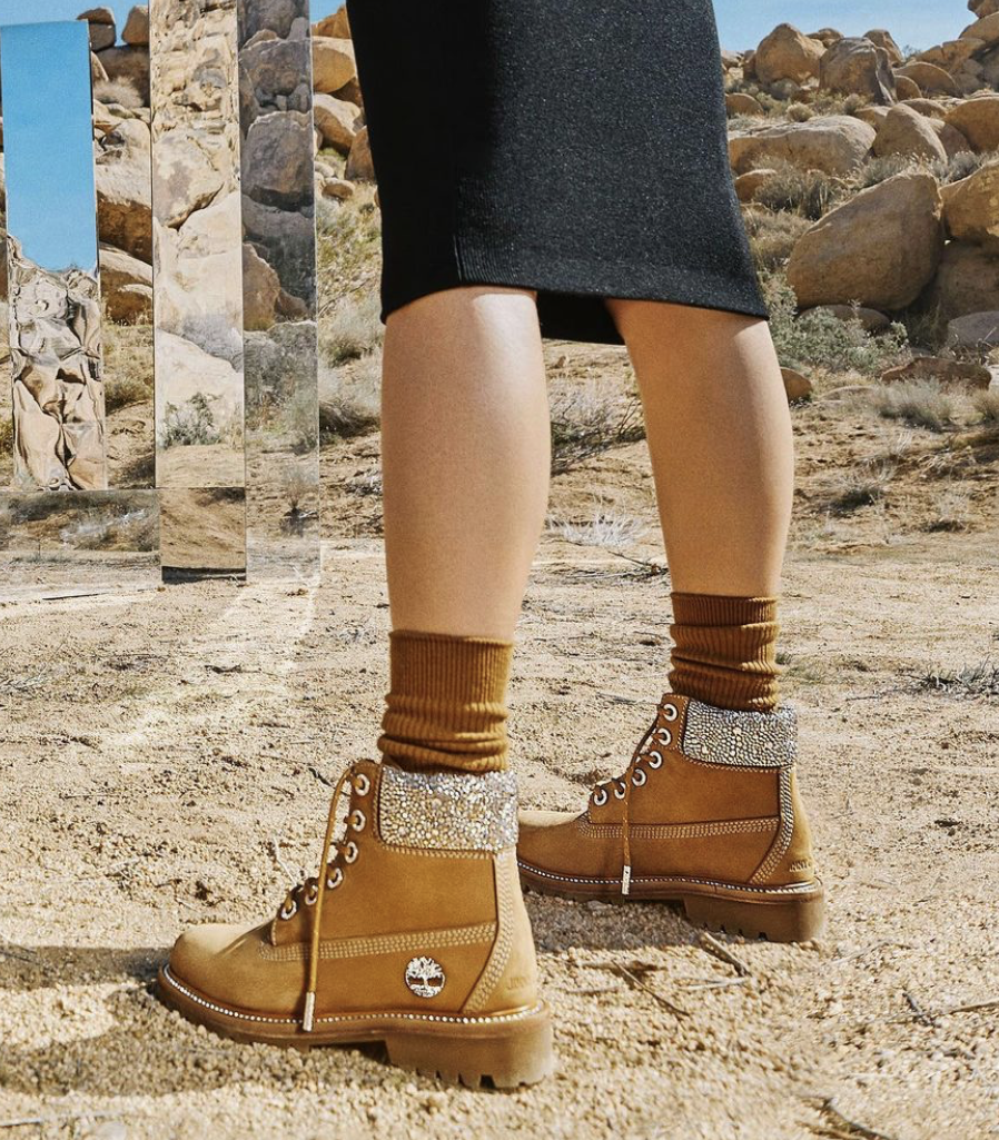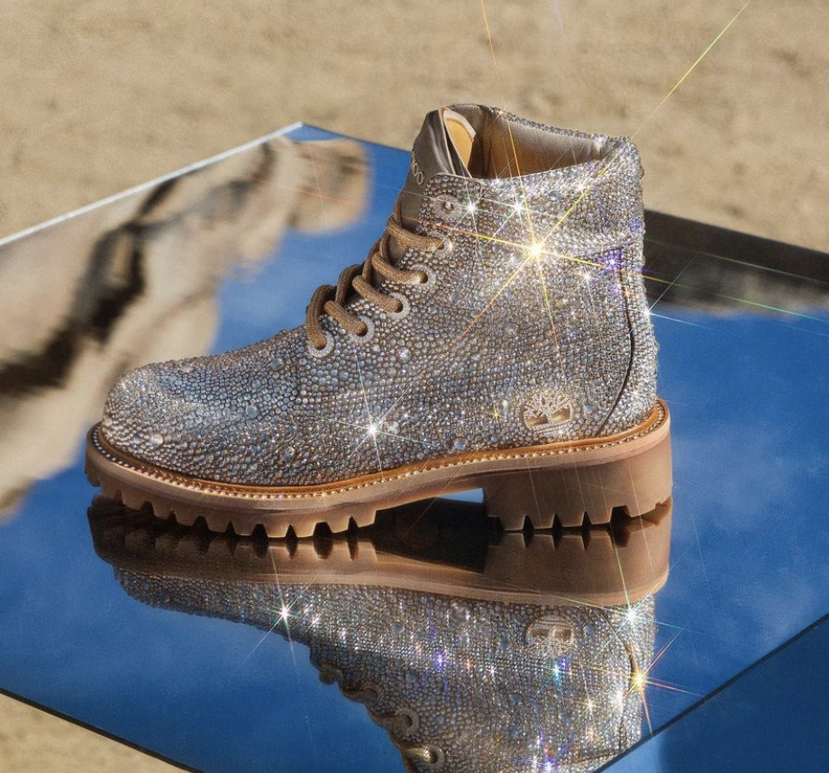 This drop came as a bit of a surprise. Our first preview of the collab came from Instagram. A video of a jewel covered Timberland boot started making the rounds and even got featured in our #BombAccessories with much delight to you Bombshells and Bombers as well as being later spotted on the feet of Jennifer Lopez.