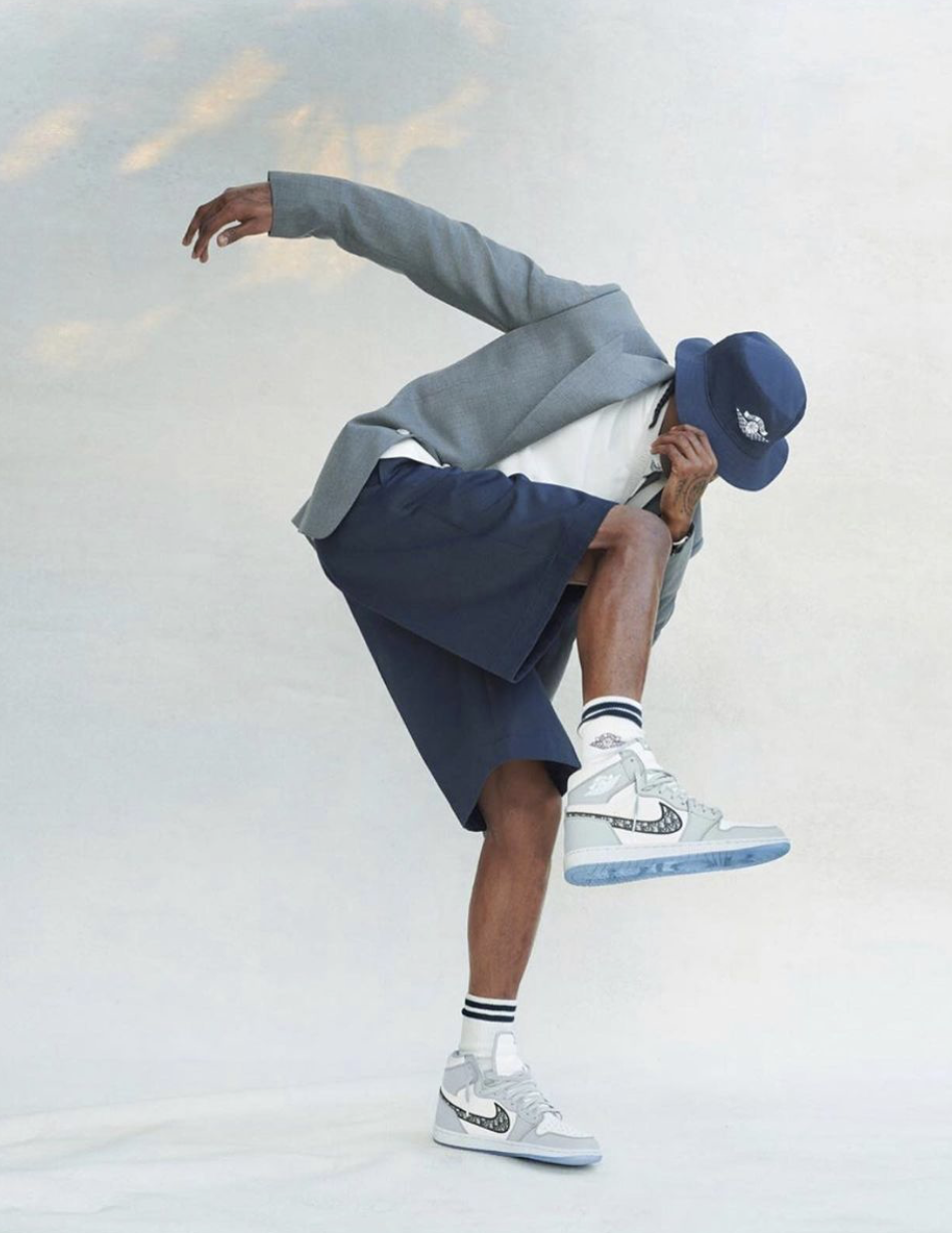 Designed for the Fall 2020 collection, the collab included jackets, shorts, t-shirts and sweatshirts with Air Jordan logos renamed as ‘Air Dior’. Using a mix of greys, whites and black, the capsule collection’s aesthetic is streetwear and basketball-esque.
