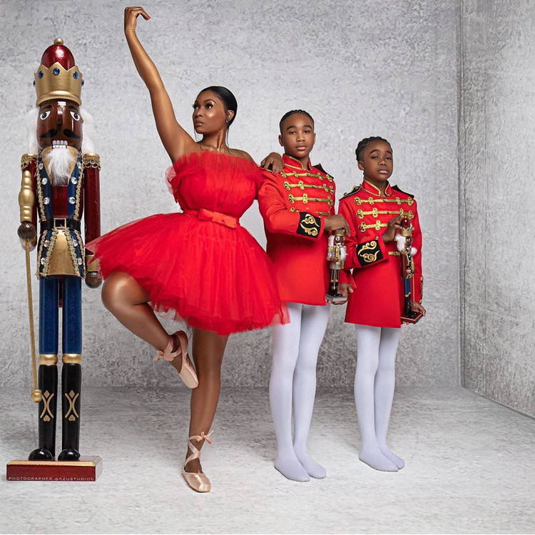 Marlo Hampton also opted for a Nutcracker theme for her photos shoot with her uncles wearing a $395 Tulle Strapless dress with a nipped waist: