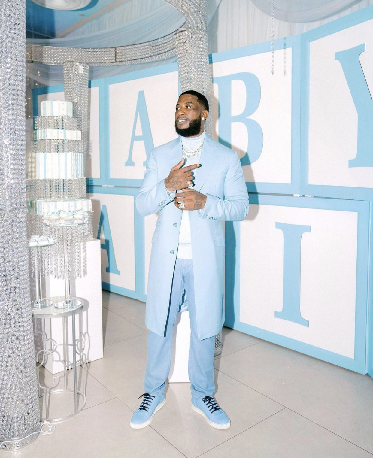 Gucci seems to enjoy matching sets as he typically opts for track suits or a jacket-pants combo for causal looks. On date nights, he’ll rock a nice dapper suit.