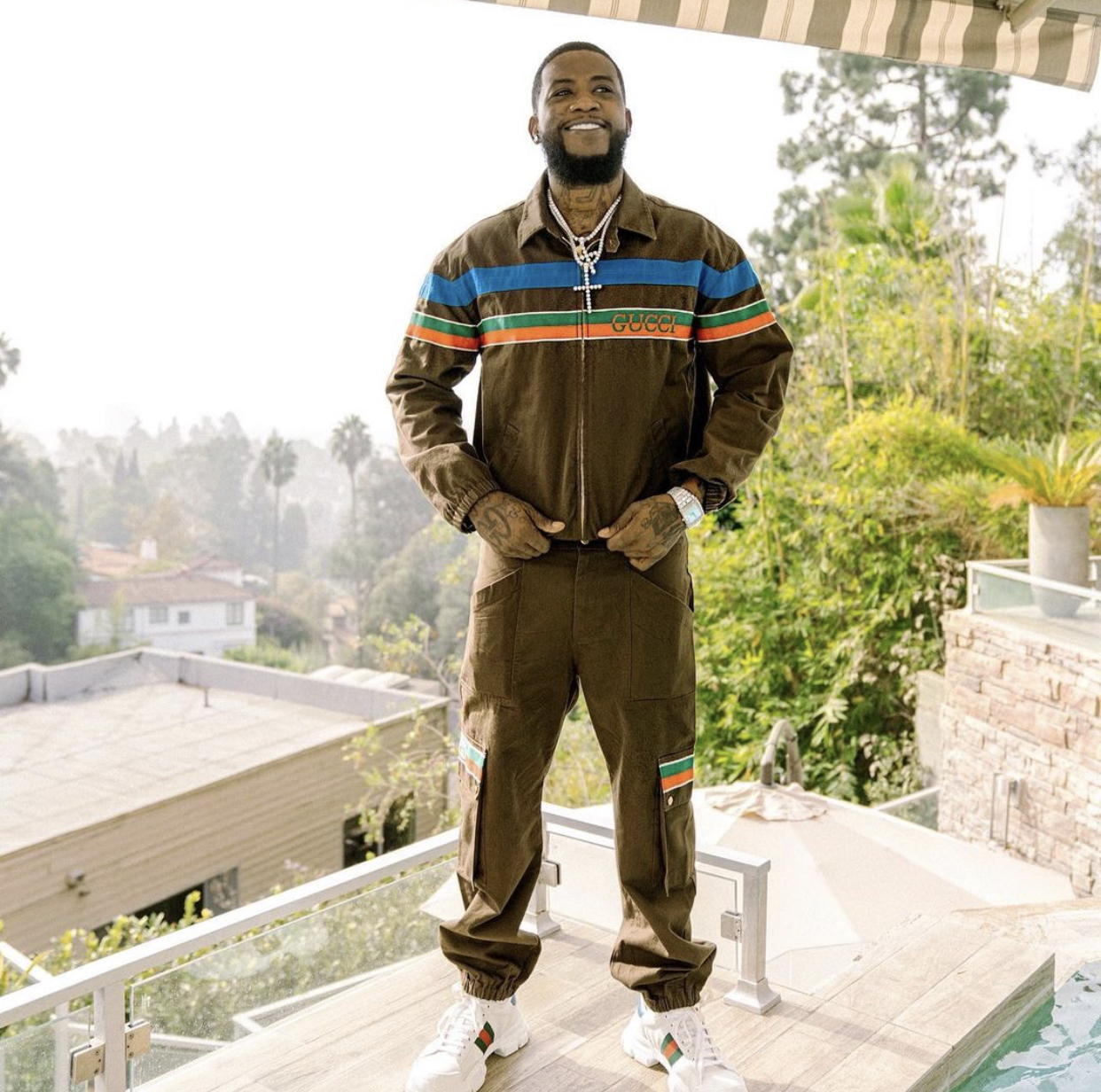From his Verzuz with Jeezy to his everyday style, Gucci Mane’s style consists of the latest designer pieces from brands like Louis Vuitton and of course, Gucci (he was the face of the Gucci Cruise 2020 campaign)! He typically compliments the style of his wife and fashionista Keyshia Ka’oir Davis.