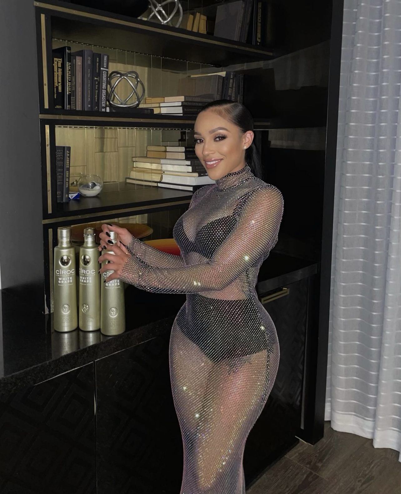 Joie celebrated New Years in a $2,415 David Koma allover crystal gown.