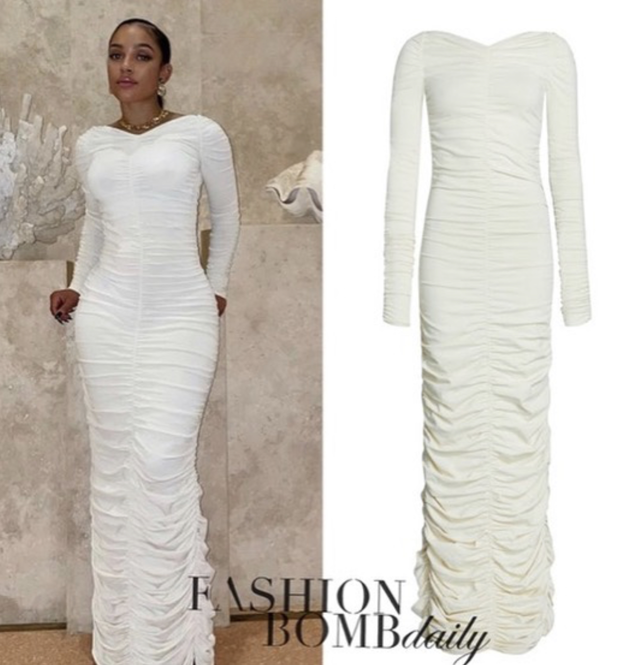 Joie Chavis wore an ivory $2,800 Khaite “Lana” dress while in Miami.