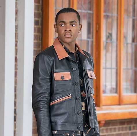 Tariq St. Patrick (played by Michael Rainey Jr.) was spotted on Power Book II: Ghost in a $2,790 Amiri contrast leather trucker jacket, styled by Frank Fleming.