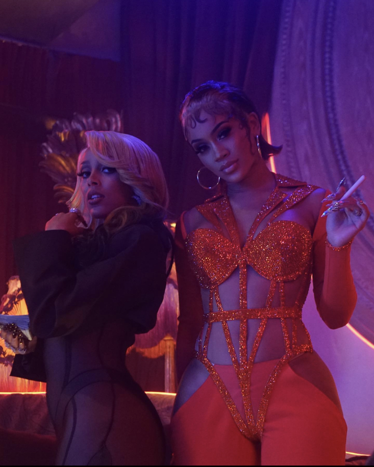 Saweetie and Doja Cat were spotted in custom Dapper Dan x Gucci sets in their latest video for their song “Best Friend”.