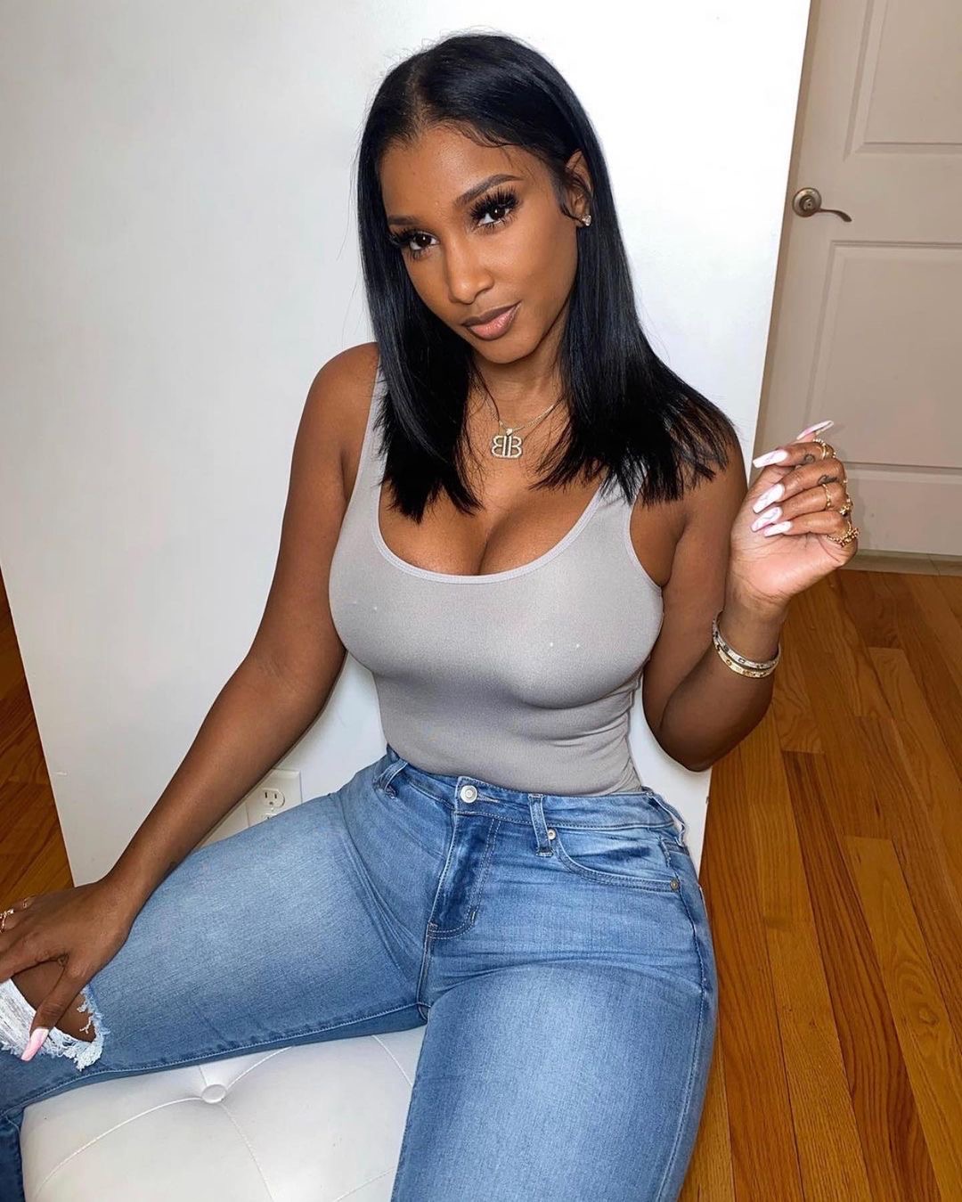 Bernice Burgos showed off her snatched waist in a simple tank and Fashion Nova Jeans.