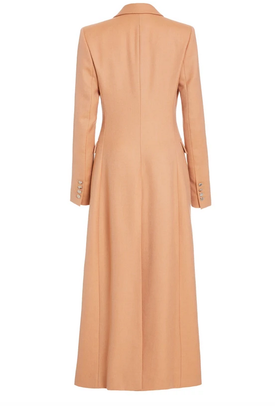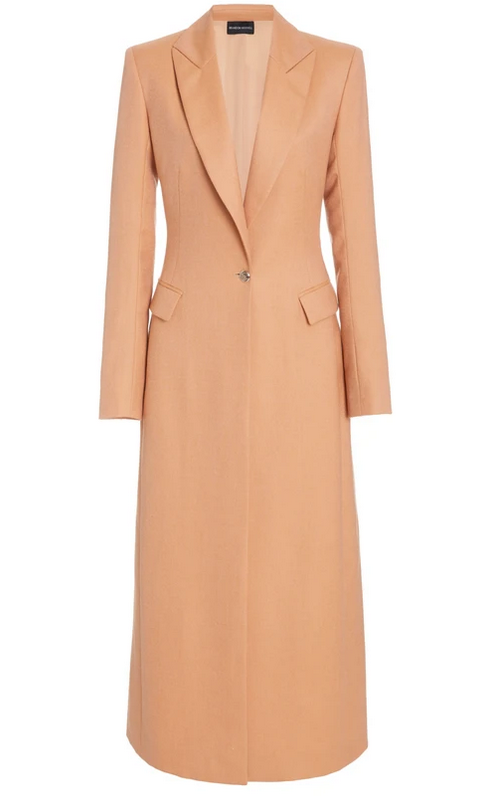 Her coat, which was $3,000 before it sold out, features a clean silhouette with an elegant shawl lapel and smart button closures.