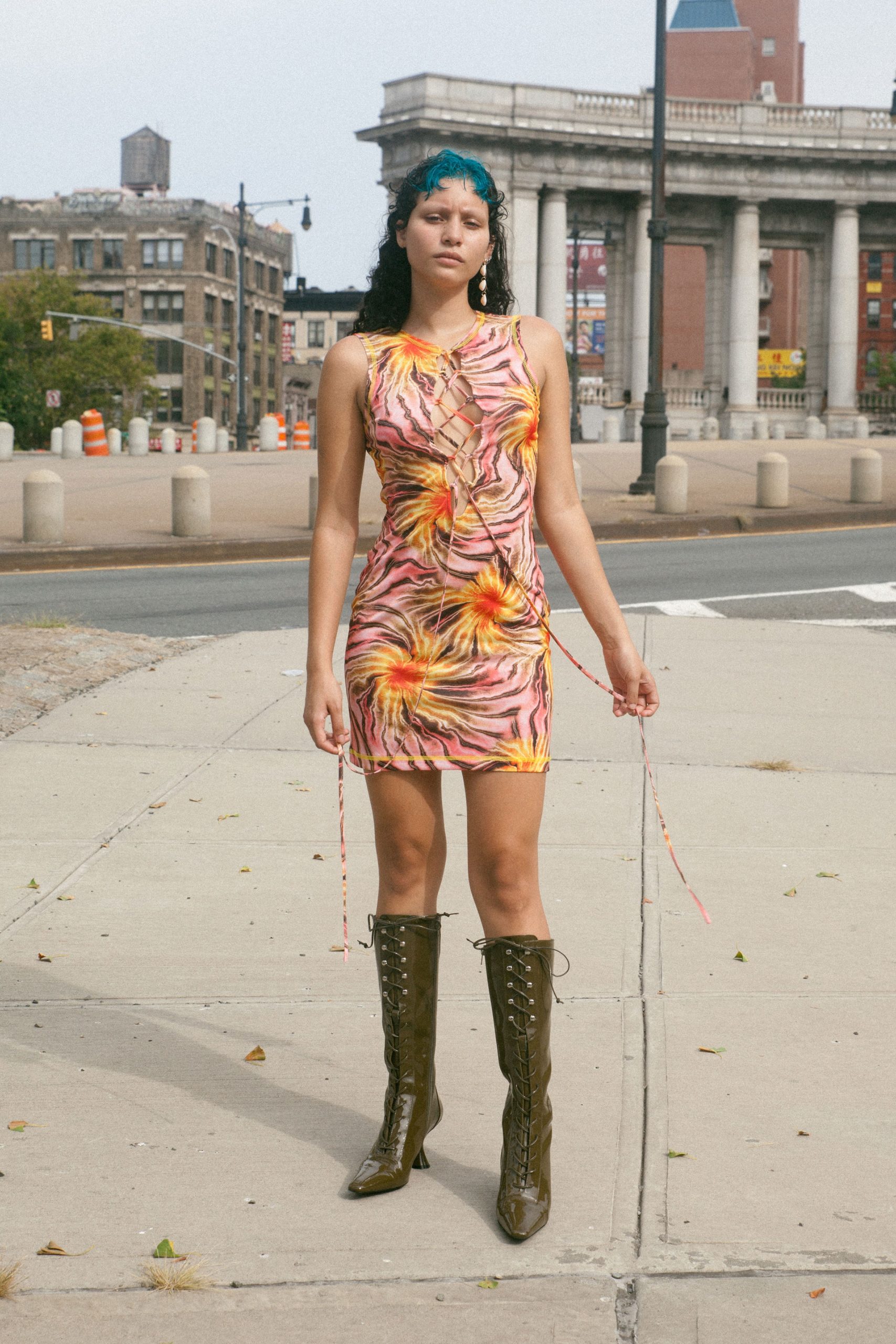 The look debuted in Shui’s Spring 2021 collection, and features dresses, skirts, and lace up shorts in the sun kissed print.