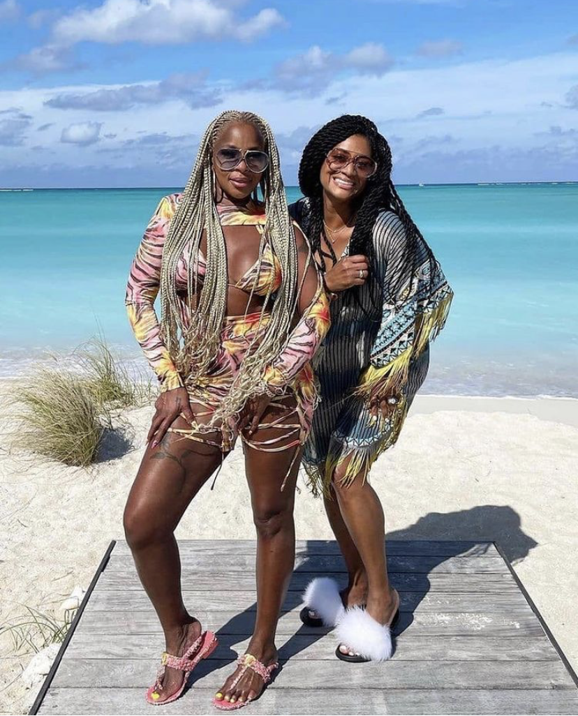 Mary J Blige enjoyed her birthday with Nina Cooper in the cut out crop top, shorts, and Chanel sandals.