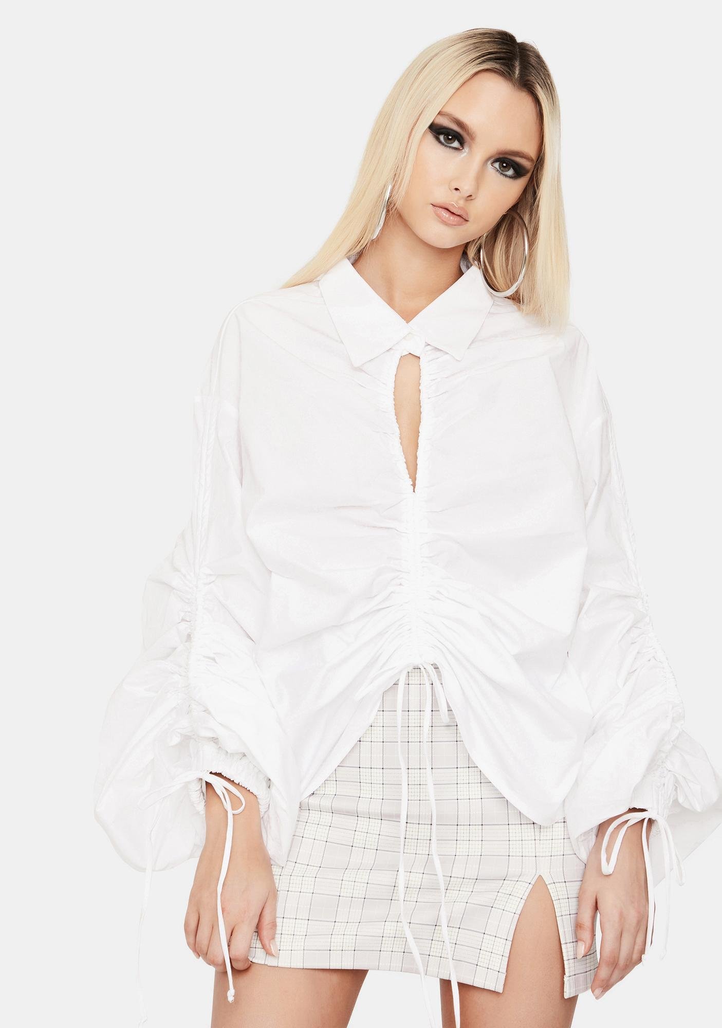 De’arra wore $50 Dolls Kill “Making Statements” button-up shirt, $89.90 Azalea Wang “Aim for the Eyes” Chunky Heel Sandals (sold out), Versace Black Medusa Biggie Sunglasses and Prada Logo-plaque Net Bucket Bag.