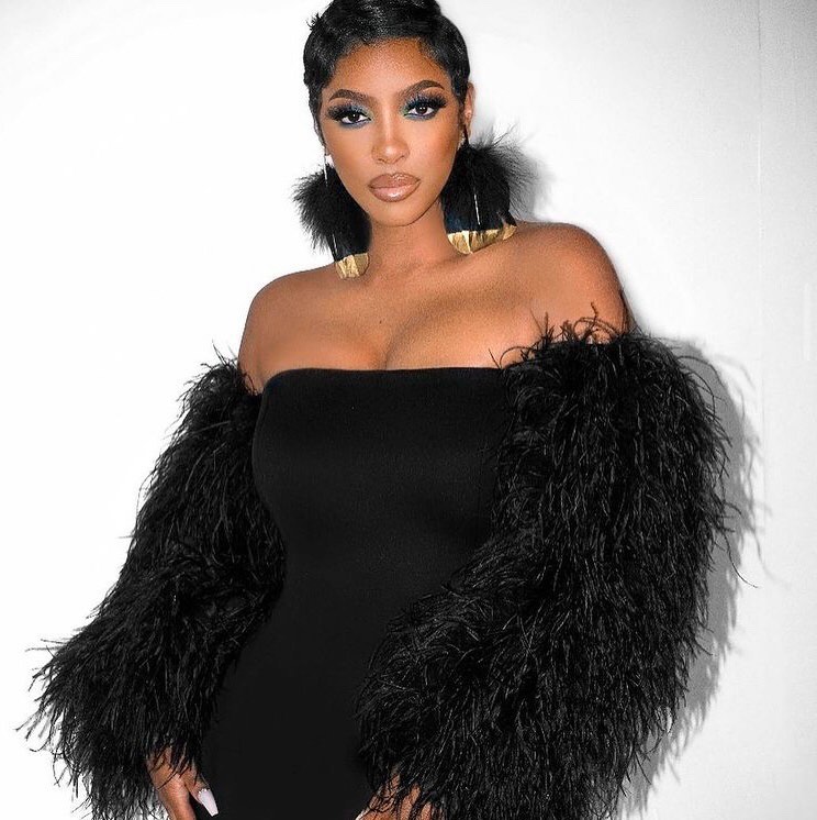 Porsha Williams looked bomb as she posed wearing a pair of $890 black and gold Tom Ford feather earrings. They feature a gold line and the bottom of the feathers appear to be dipped in gold. These come in an array of colors such as pink, blue and yellow.