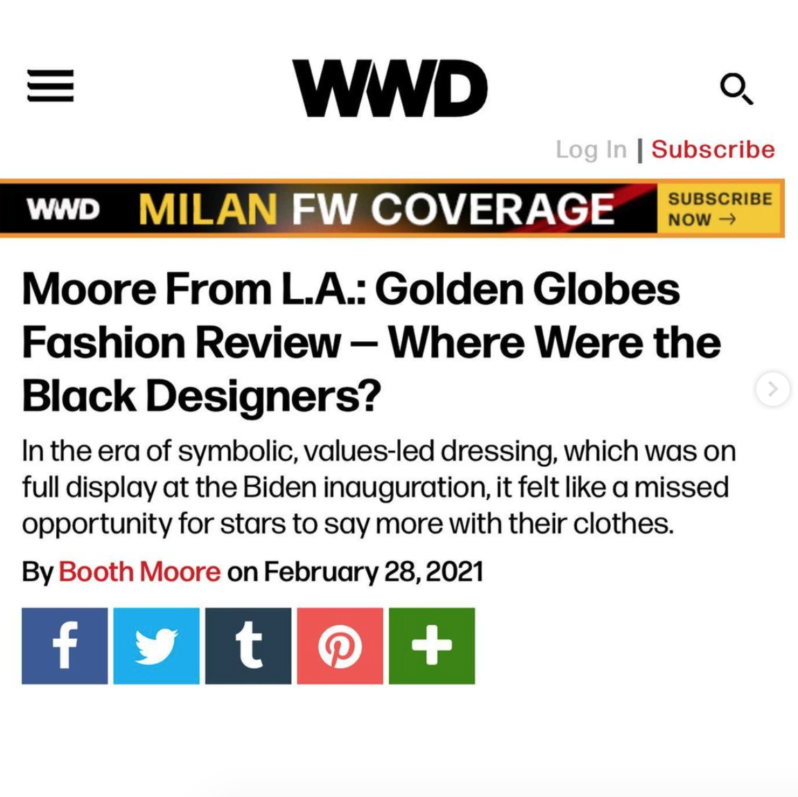The Fashion World is still buzzing from last night’s epic Golden Globes carpet! But while most of us are determining who should be on the best dressed list, Women’s Wear Daily writer Booth Moore took the opportunity to question the lack of Black Designers on the red carpet. She wrote, “For all the discussion about the lack of diversity and inclusion in the HFPA membership, and the Golden Globes snub of every single Black-led ensemble film in the motion picture category, there were precious few designers of color represented on the virtual red carpet. And that’s something the talent could control.”