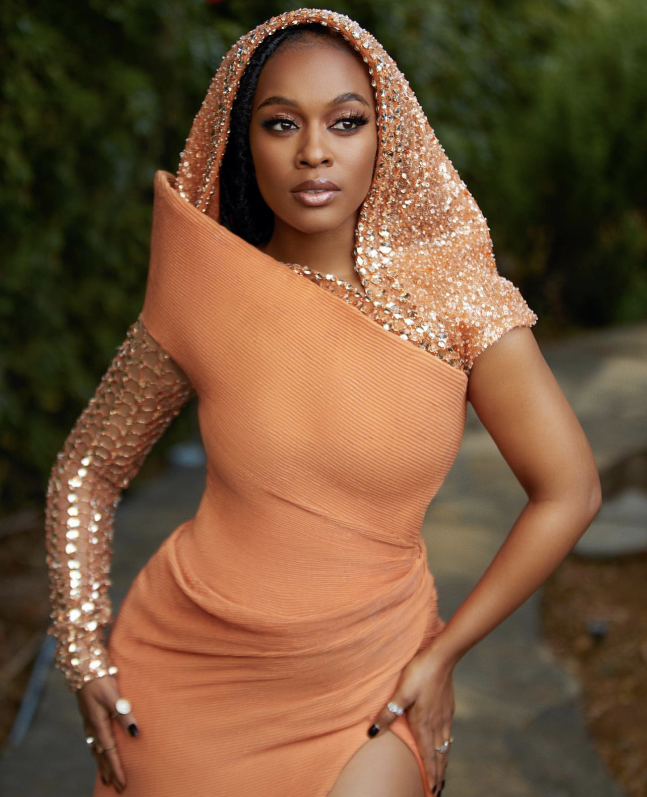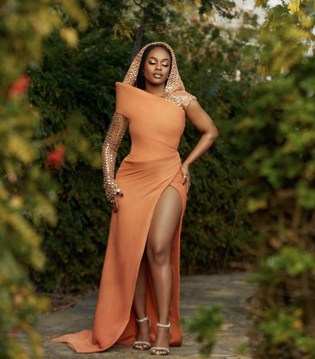 Coming 2 America premiered on Friday, and the stars of the movie enjoyed the premier of the movie safely and virtually! Breakout actress Nomzamo Mbatha, who plays “Mirembe” in the film, attended the virtual premier rocking a stunning orange look which would’ve turned heads on an on-person red carpet.