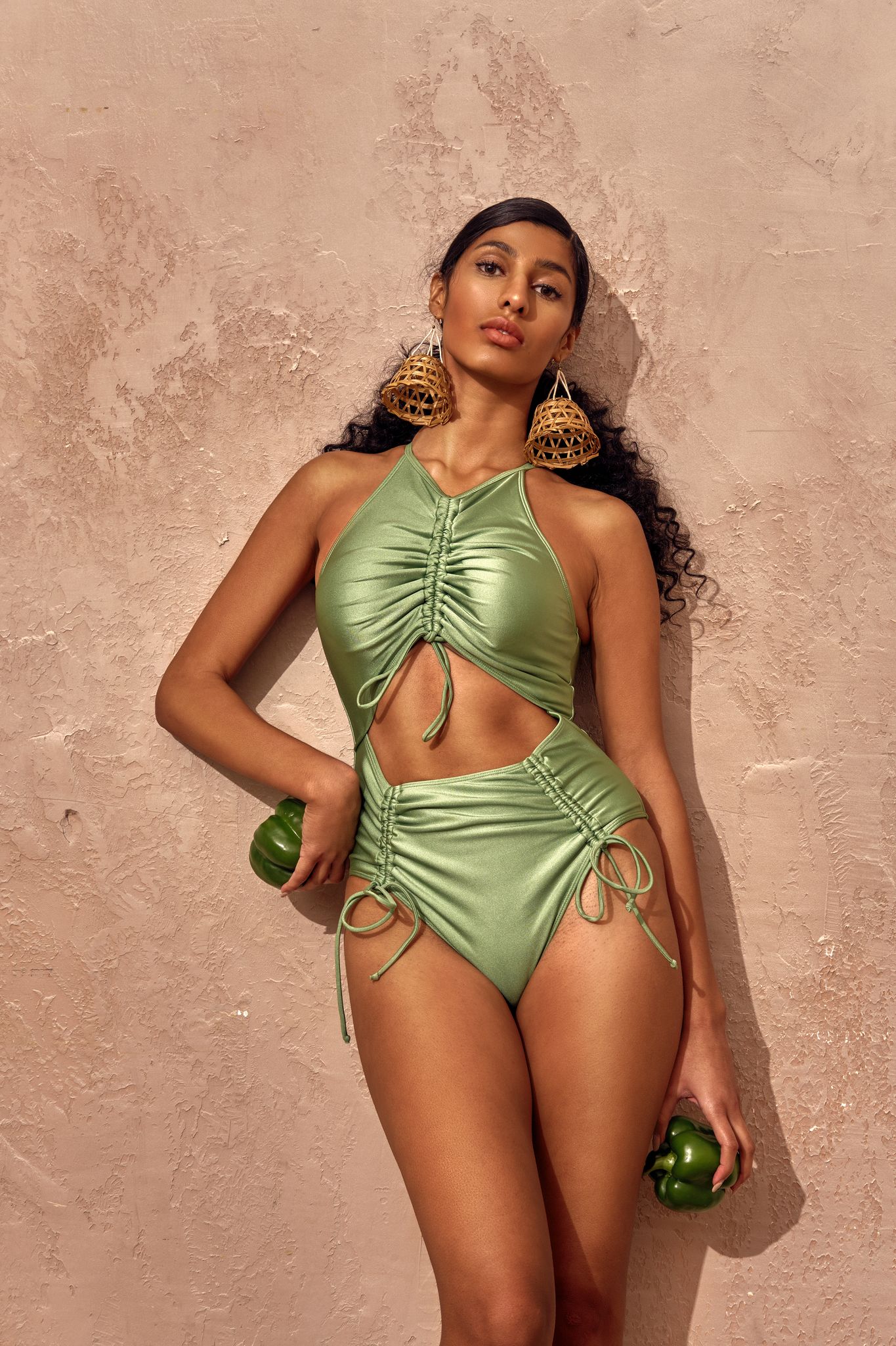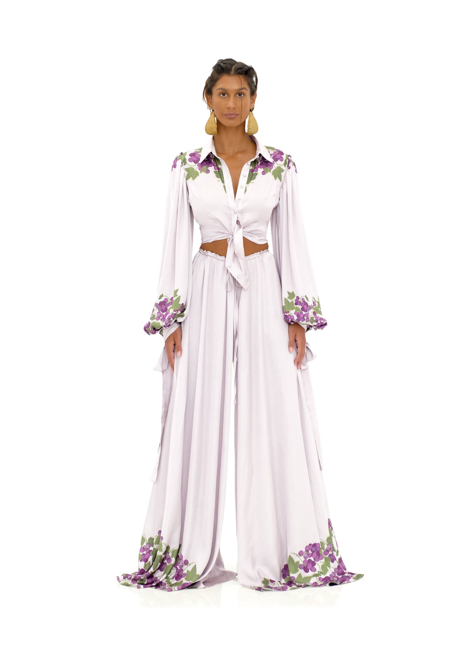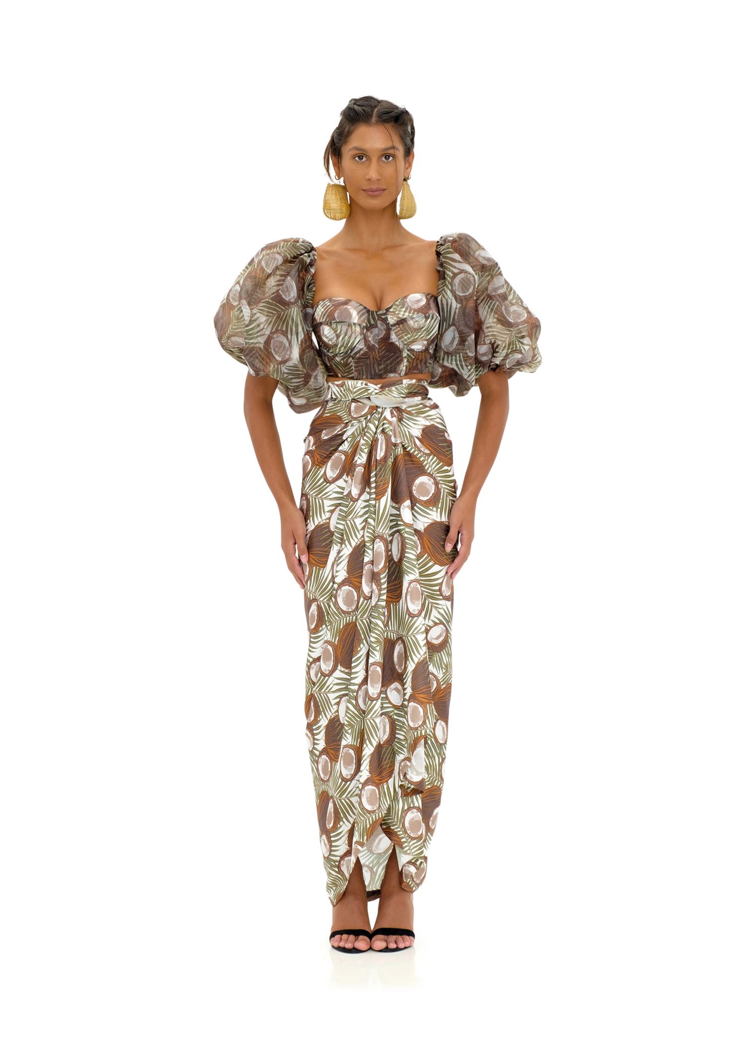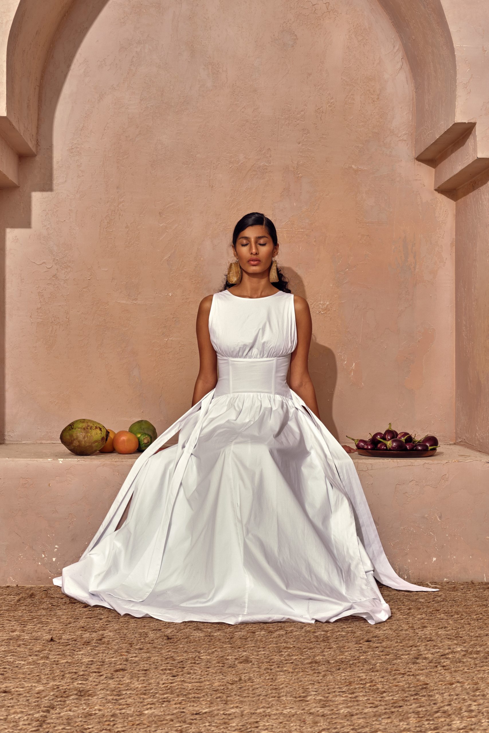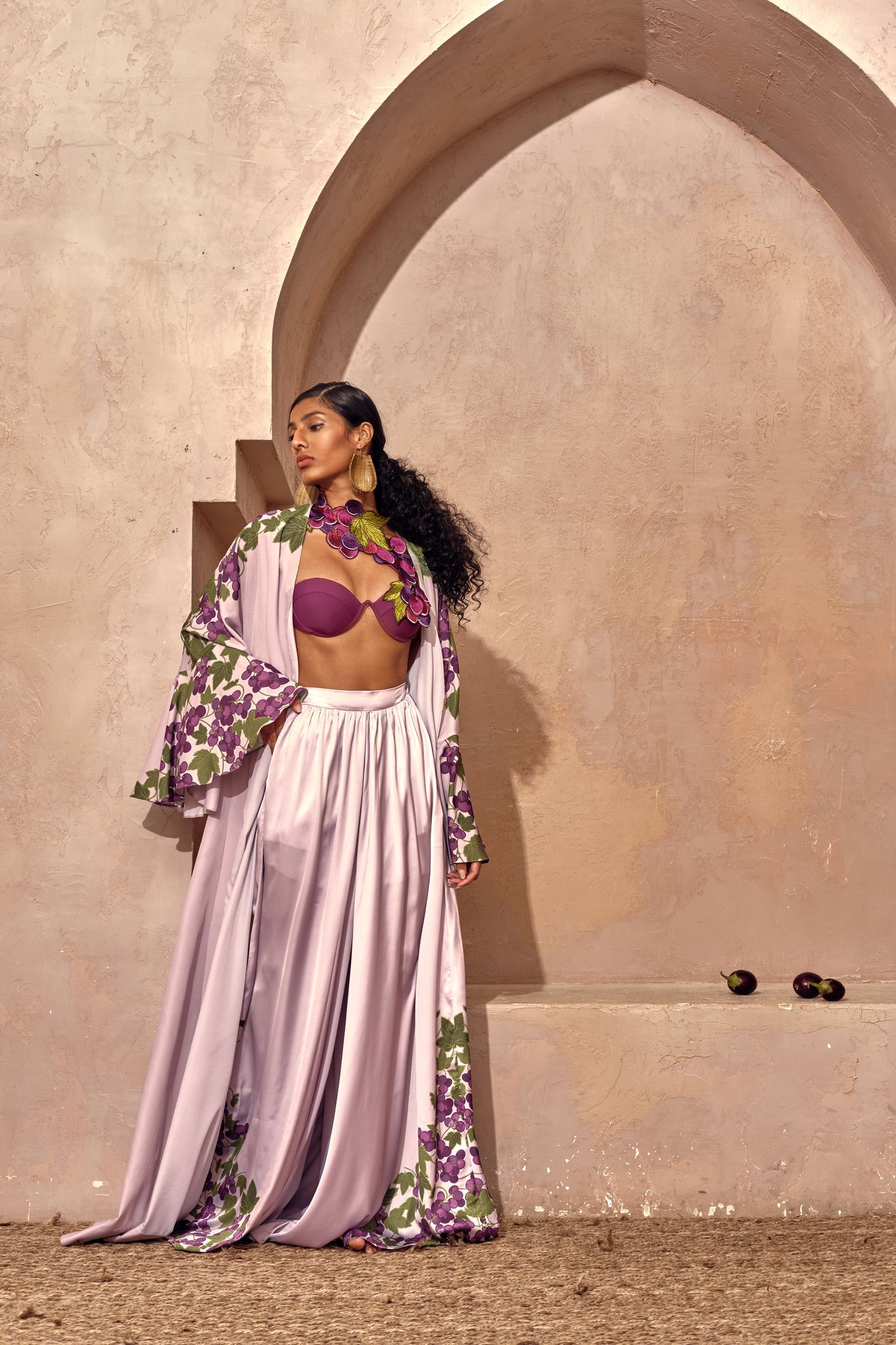 In a press release, founder and creative director Andrea Dumbei Iyamah describes the collection: “The Andrea Iyamah HARVEST COLLECTION is a story of the road to abundance. It is a celebratory display of the fulfilment of ‘the work of our hands’. The colours this season are intentional hues of a mélange of olive green, papaya orange, eggplant purple, cocoa brown and coconut white. The harvest is the vantage point that showswork as fulfilling, sacred, a gift and an honour. That the ground yields its harvest is a journey of toil, prayer and patience that only the farmer knows too well.“
