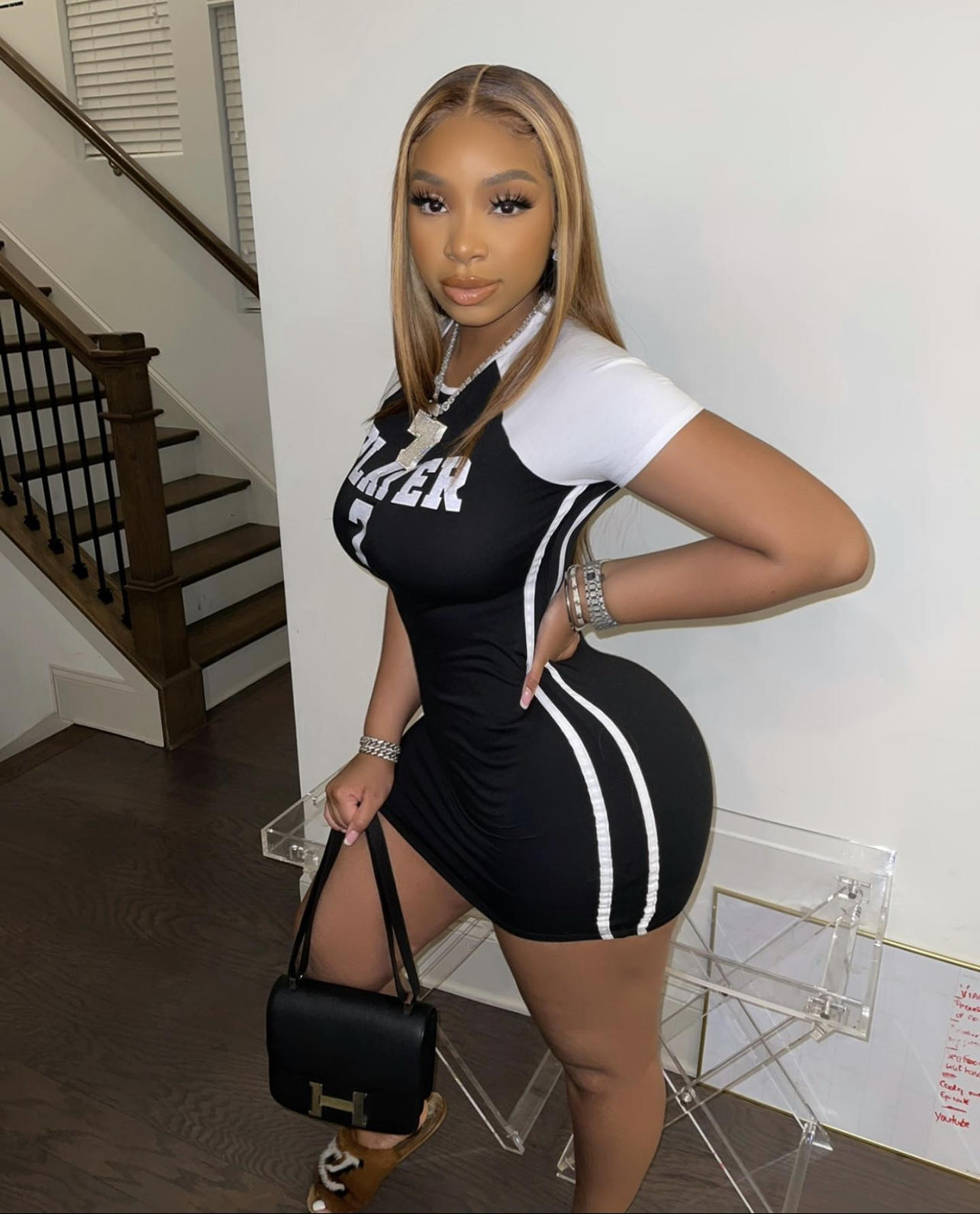 LightSkinKeisha wore Fashion Nova’s $29.99 Luck Number Seven Mini Dress. She gave us a moment of high-low fashion rocking the affordable dress with designer accessories like Louis Vuitton fur slides and an Hermes bag.