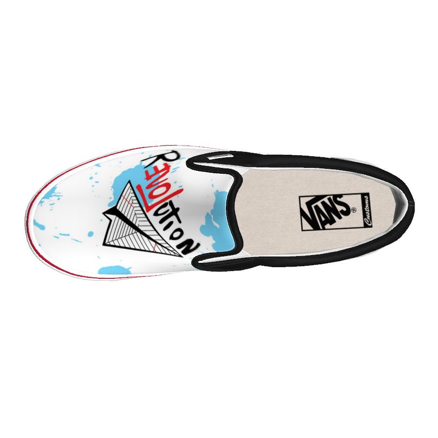 Now, Guy Stanley Philoche has partnered with Vans to design a limited-edition Classic Slip On shoe that will assist small businesses who have been affected by the COVID-19. The shoe will feature Philoche’s “reVOLution” symbol, which advocates for social change, as well as his signature paper airplane and the Connecticut Fairfield Comedy Club logo, the assistance recipient for this collaboration.