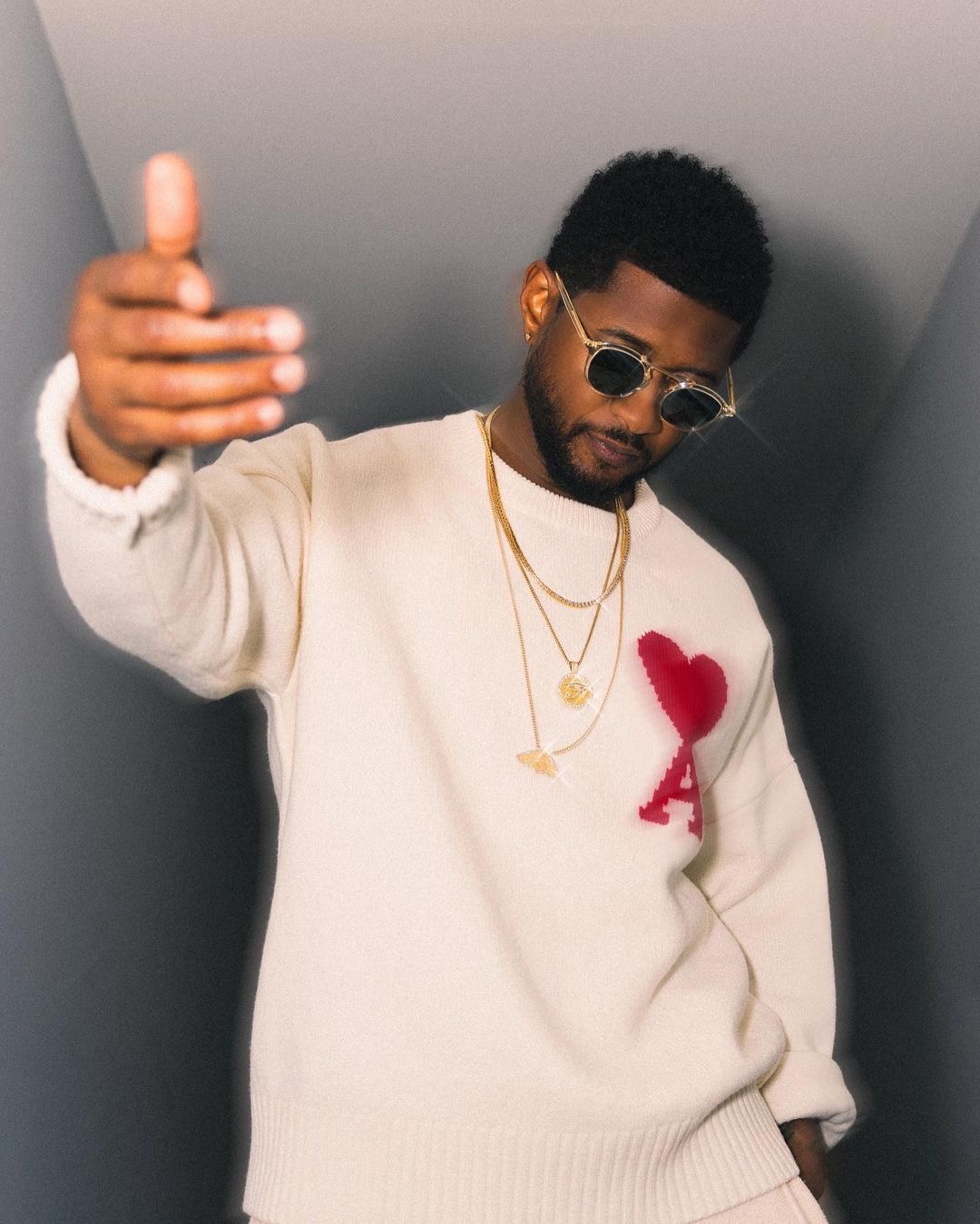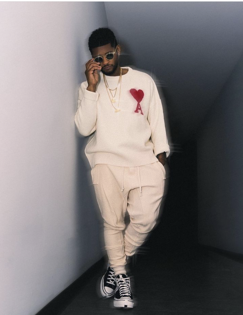 Usher looked cool in a $445 Coeur Wool Sweater by Ami Paris: