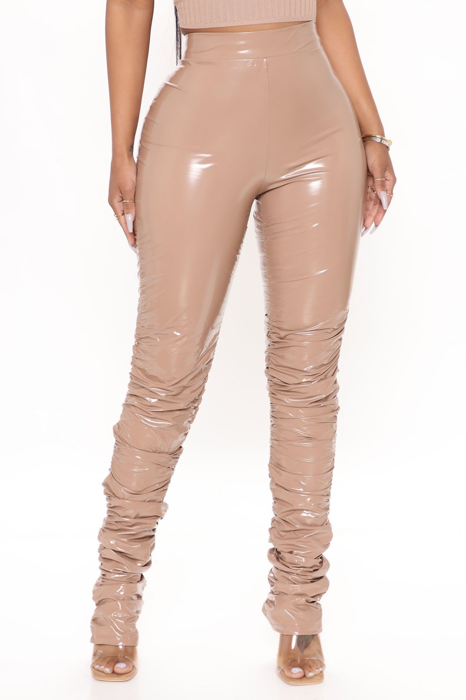 Cyn Santana wore Fashion Nova’s $39.99 Take It Or Leave It Latex Stacked Pant in mocha. While the mocha color worn by Cyn is sold out, you can still purchase the pants in black. Fashion Nova is always doing restocks as well, so you can sign up to notified when your size in the mocha pants are back in stock.