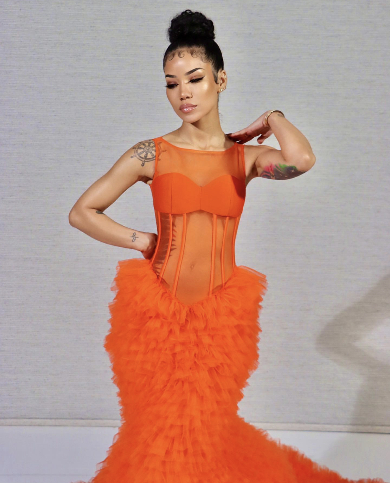 Jhene Aiko celebrated her 33rd birthday yesterday following the 63rd Annual Grammys Awards. To bring in her birthday, she recapped on her Grammys performance where she wore a dazzling couture orange tulle dress.