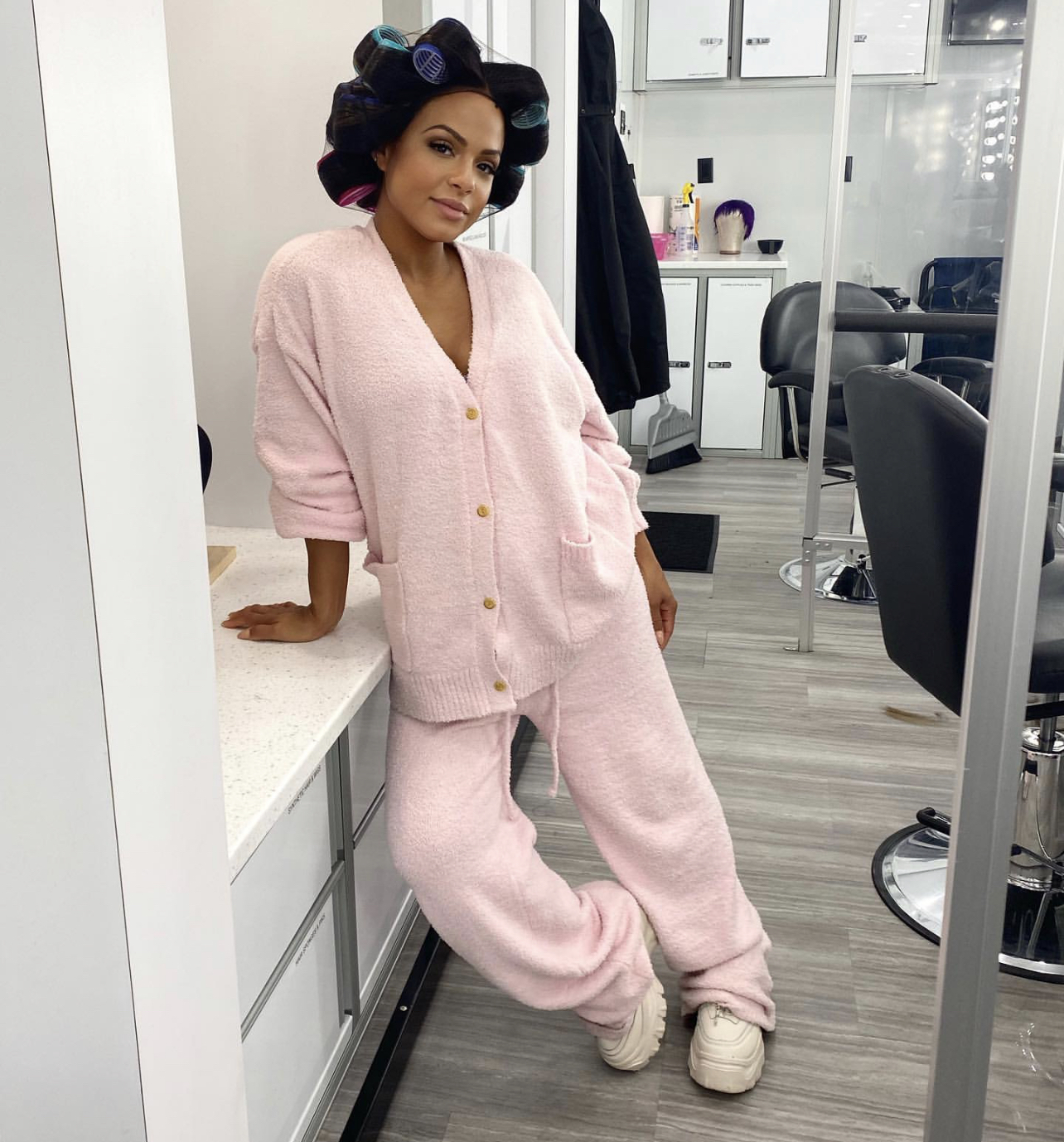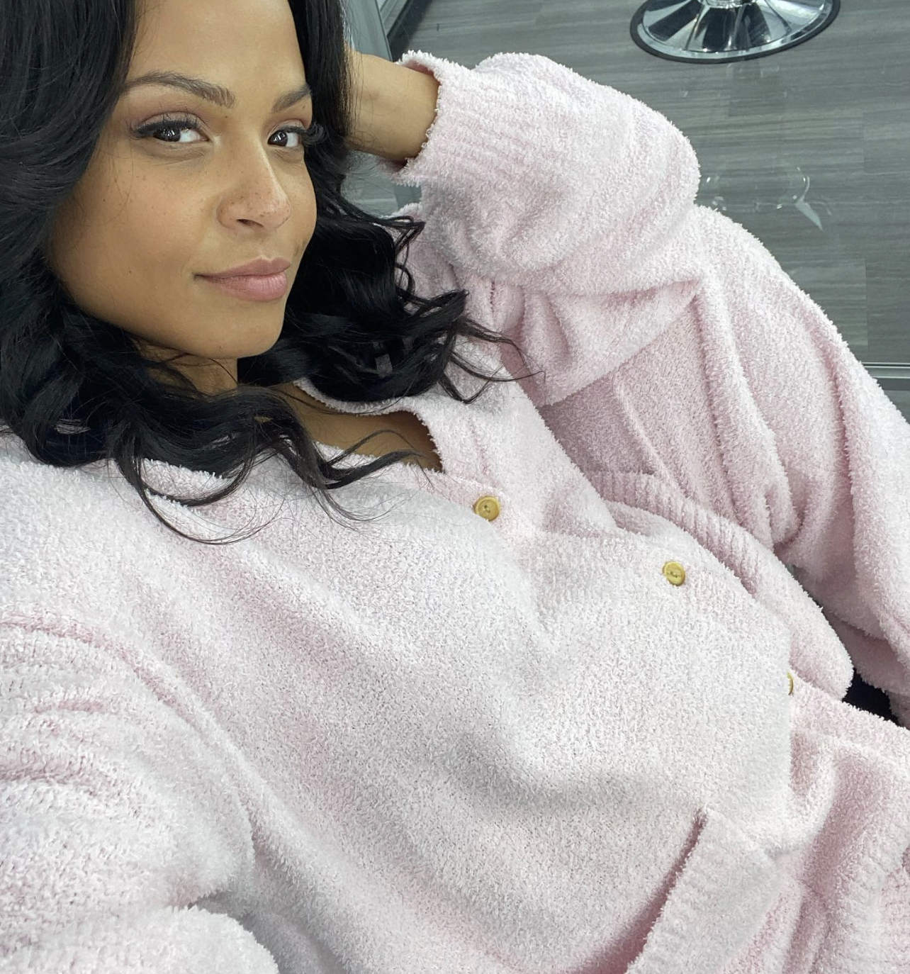As she awaits the arrival baby #3, Christina Milian is still putting work in the entertainment industry. Recently, she was spotted prepping for a glam session wearing a pink fuzzy knit set by Fashion Nova.