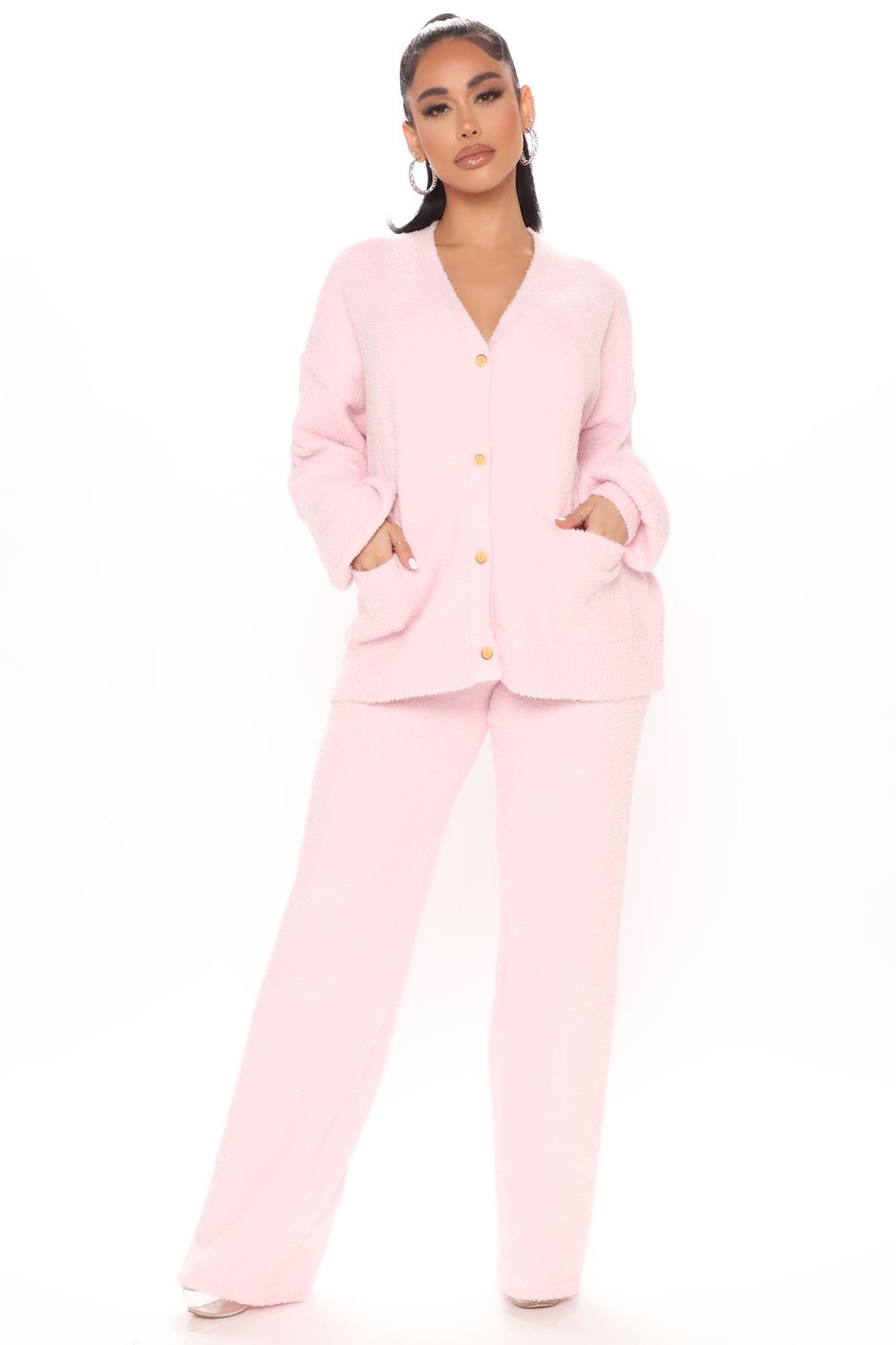 Currently on sale for $41.99, the Smile Again Fuzzy Sweater Pant Set comes in both blush (as spotted on Milian) and taupe. The set also features an oversized cardigan and high-waist wide leg pants in an ultra-soft and fuzzy knit fabric.