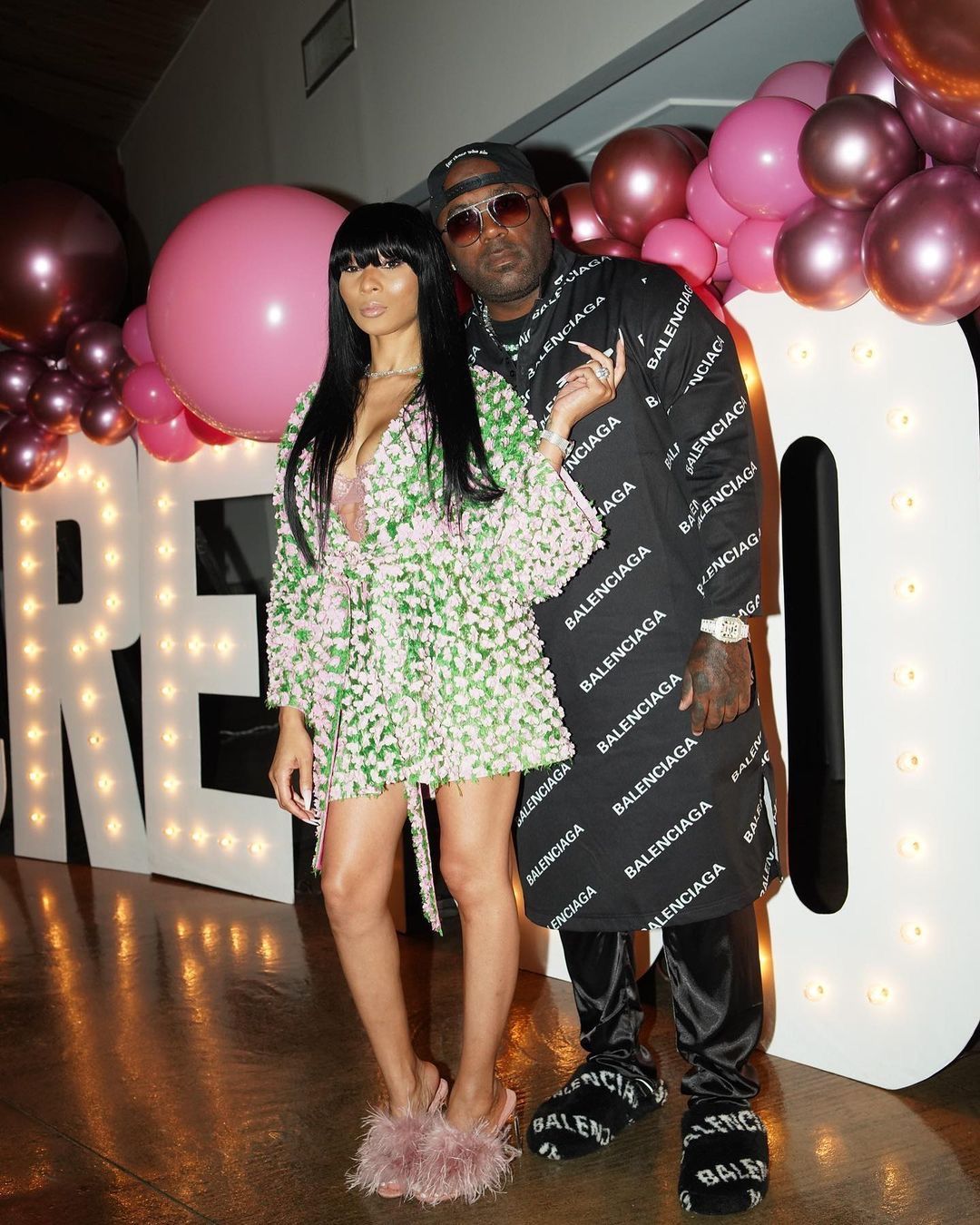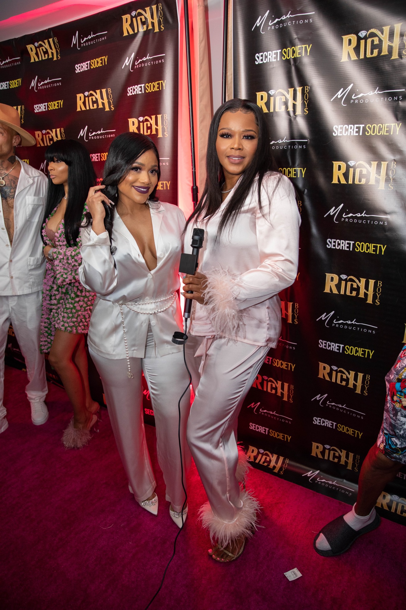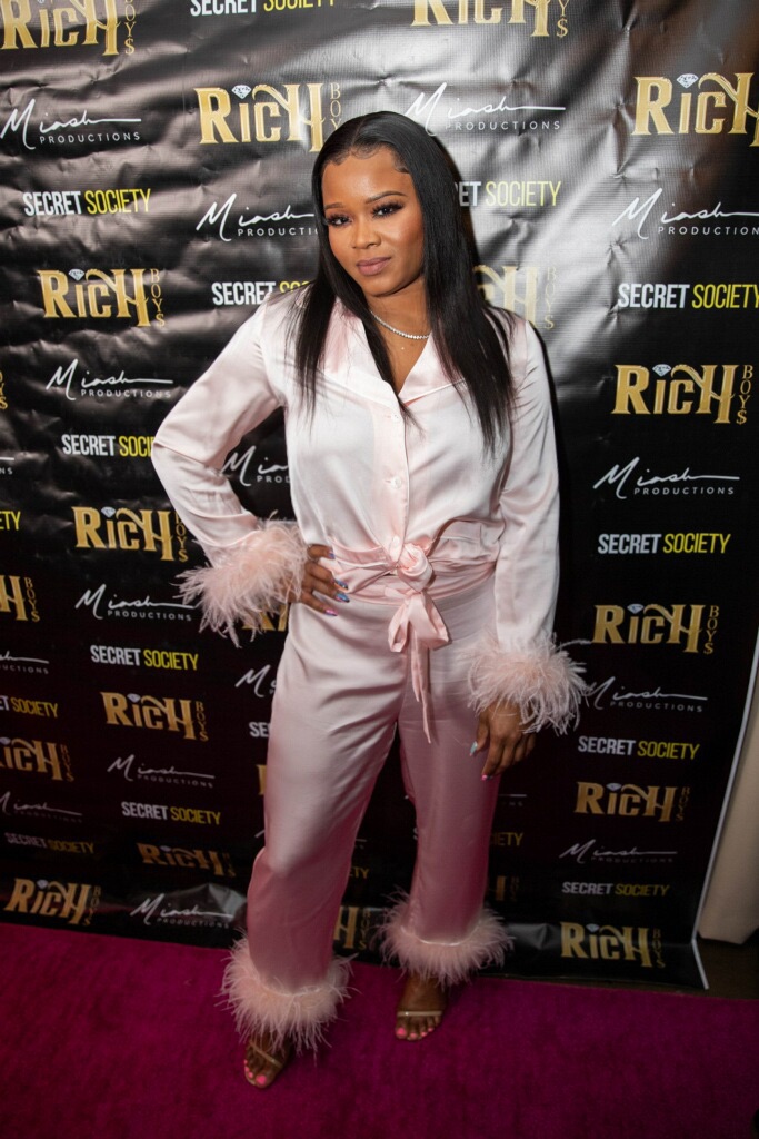 Producers Miasha Coleman and Rich Coleman were in attendance. Rich Coleman wore a Balenciaga look while Miasha Coleman wore a look by Odds Concept paired with Free People feather mules.