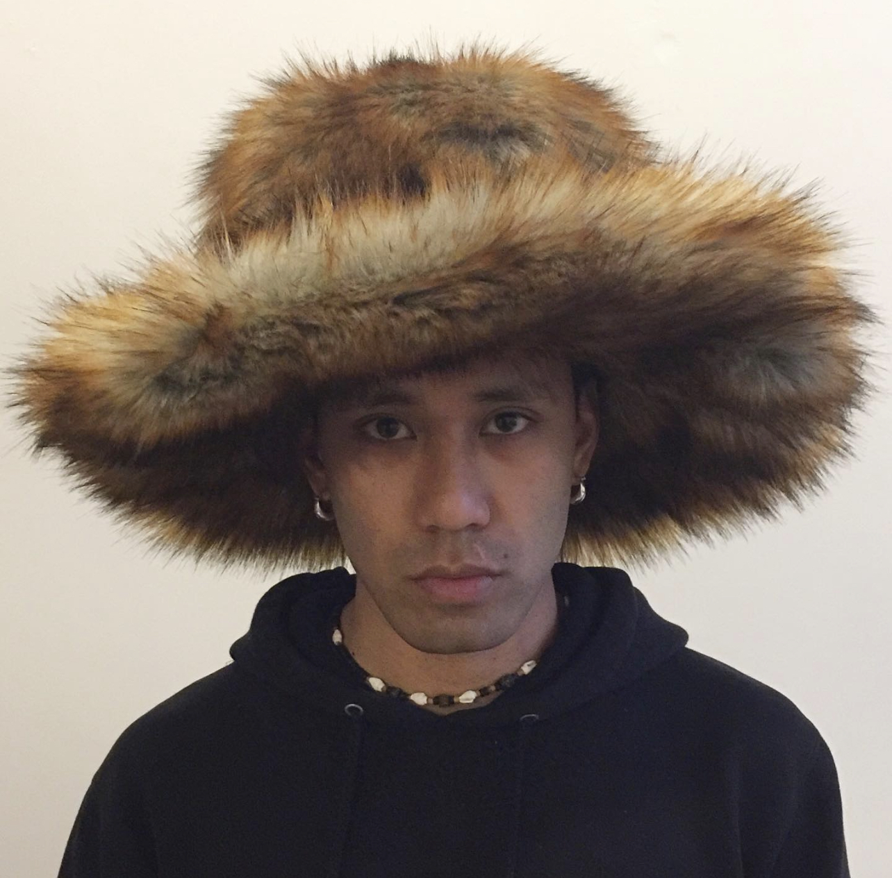 Rihanna was spotted out in LA with her best friend Melissa Forde wearing a fuzzy-chic look. Her look included a custom faux fur hat by Benny Andallo, a white cropped t-shirt, Gucci by Tom Ford Spring/Summer 1999 jeans (available for $15,534.66 in a US size 6 on 1st Dibs), a $6,500 Fendi FF Beaded Baguette Bag (sold out), and $1,390 Tom Ford Snake Print Padlock Naked Sandals (sold out).