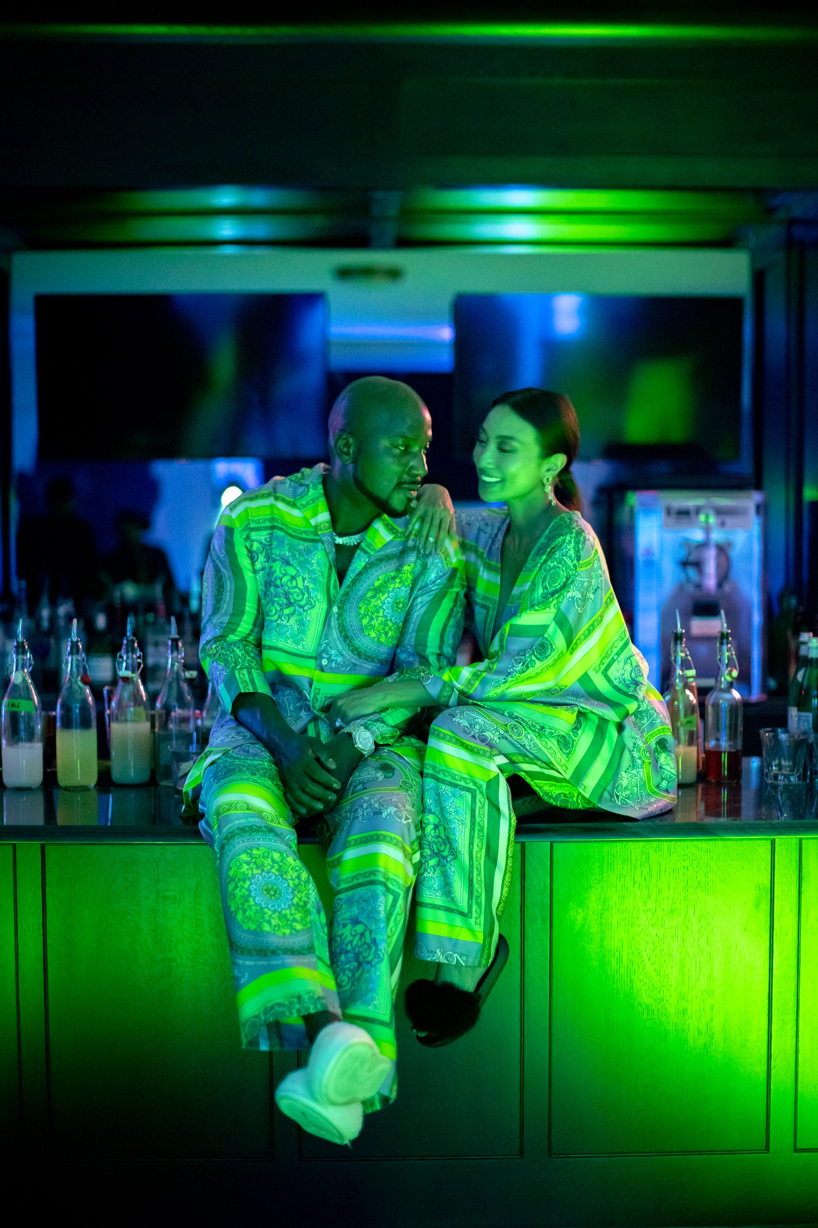 For the afterparty aka the reception, the two opted for matching Versace top and pants sets for a more chill look.