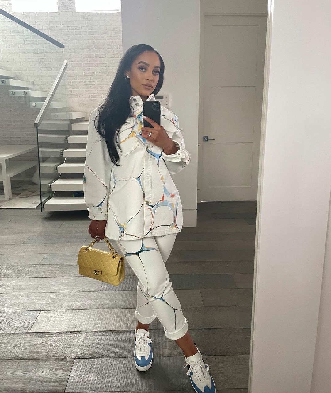 Joie Chavis celebrated Easter in style, rocking an $850 Stella McCartney Jacket, $625 Marble Jeans, a Chanel bag, and $860 Hermes Boomerang Sneakers.