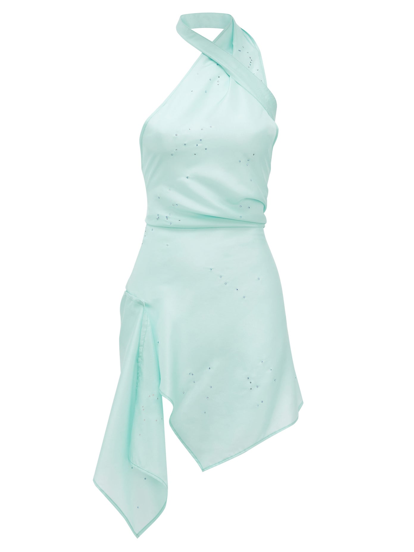 Gabrielle Union posed in a $721 Ludovic de Saint Sernin Swan halterneck crystal-embellished silk dress which is currently on sale for $216 at Matches Fashion. Her look was styled by Thomas Christos. She topped the look off with a wet-like hairstyle which included slick baby hairs by Larry Sims.