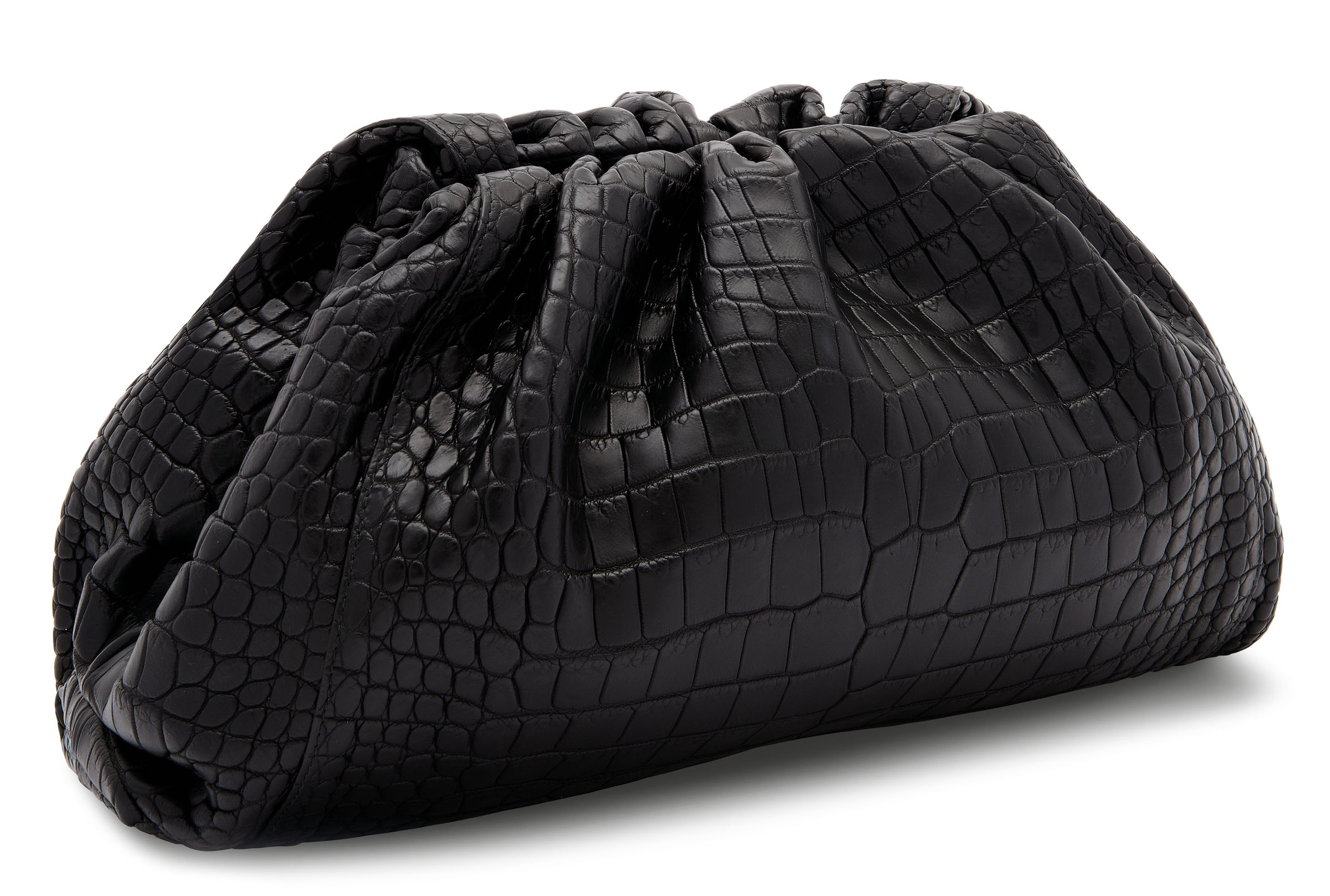 She also carried this same Bottega Veneta crocodile Mini Pouch with her recent edgy Rick Owens look while dining at Giorgio Baldi.