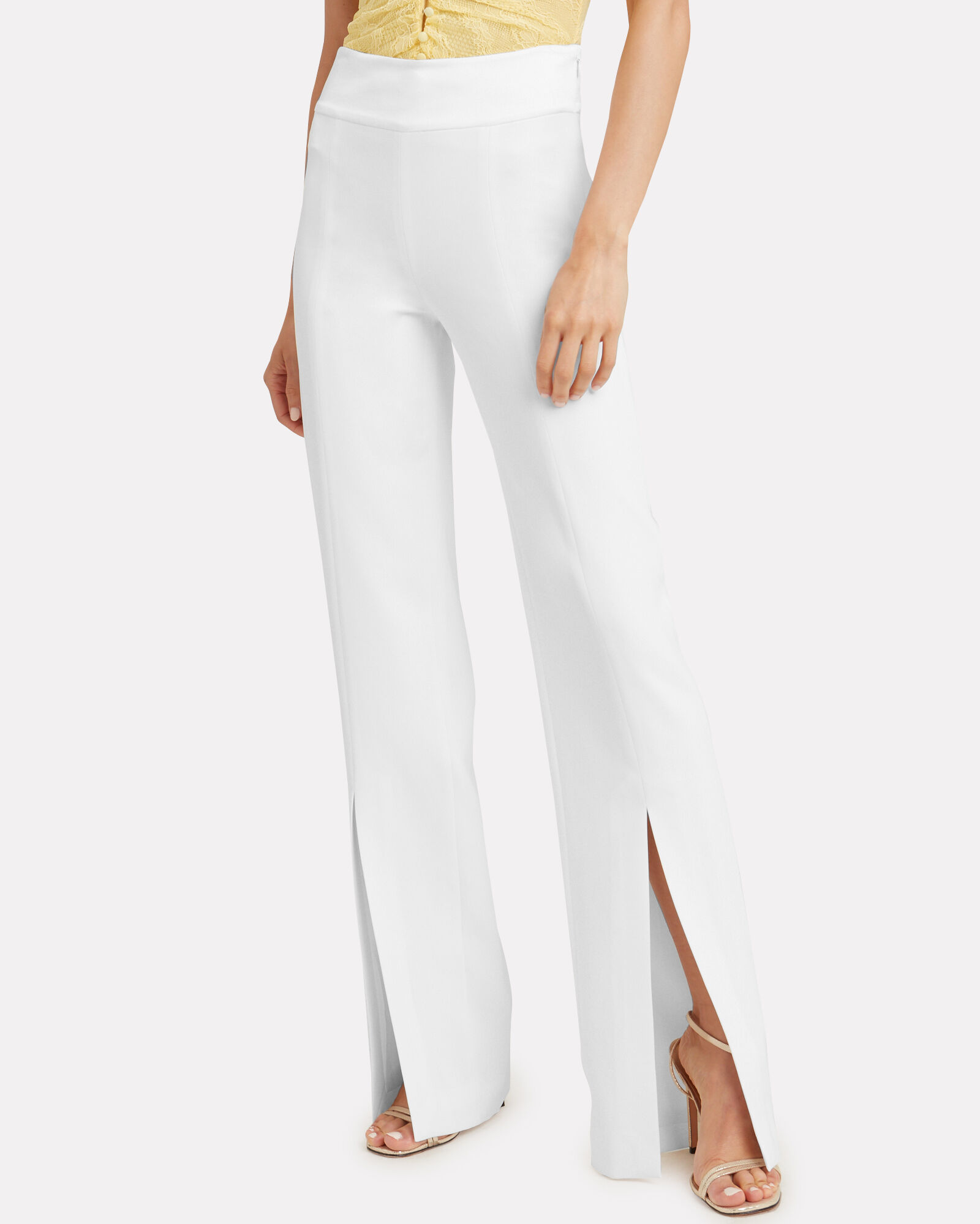 Tia Mowry wore a white Jonathan Simkhai look including a white camisole and white $475 Satin Combo Front Slit Pants. She topped the look off with a $1,890 UNTTLD Double-Breasted Velvet Coat and yellow $890 Bottega Veneta Square-Toe Leather Sandals. Her look was styled by Judy Kaufman.