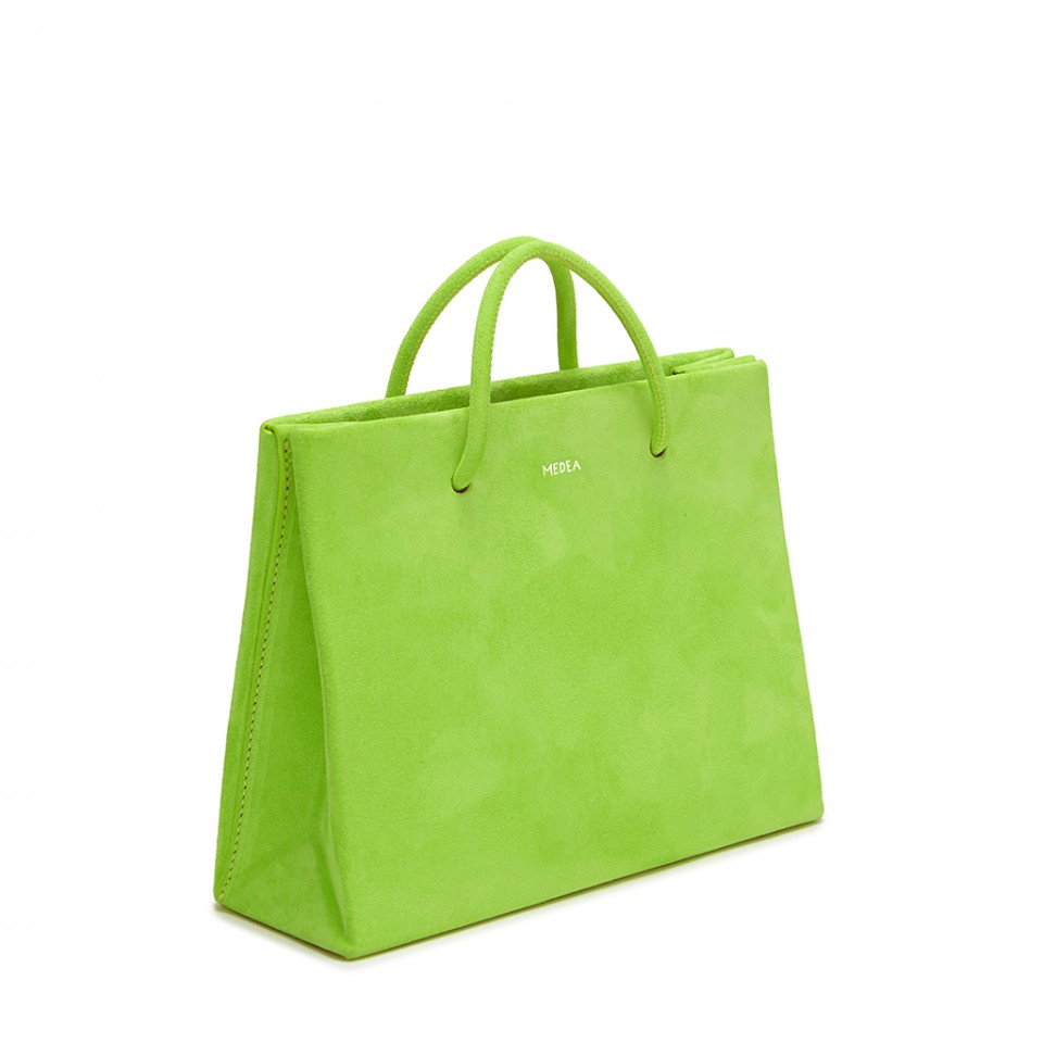 She completed the look with $848 Medea “Hanna” bag in suede green, $220 Philó “Celeste” sunglasses in purple, and neon pumps which also appear to be Balmain. Both looks were styled by her go-to stylist, Zerina Akers.