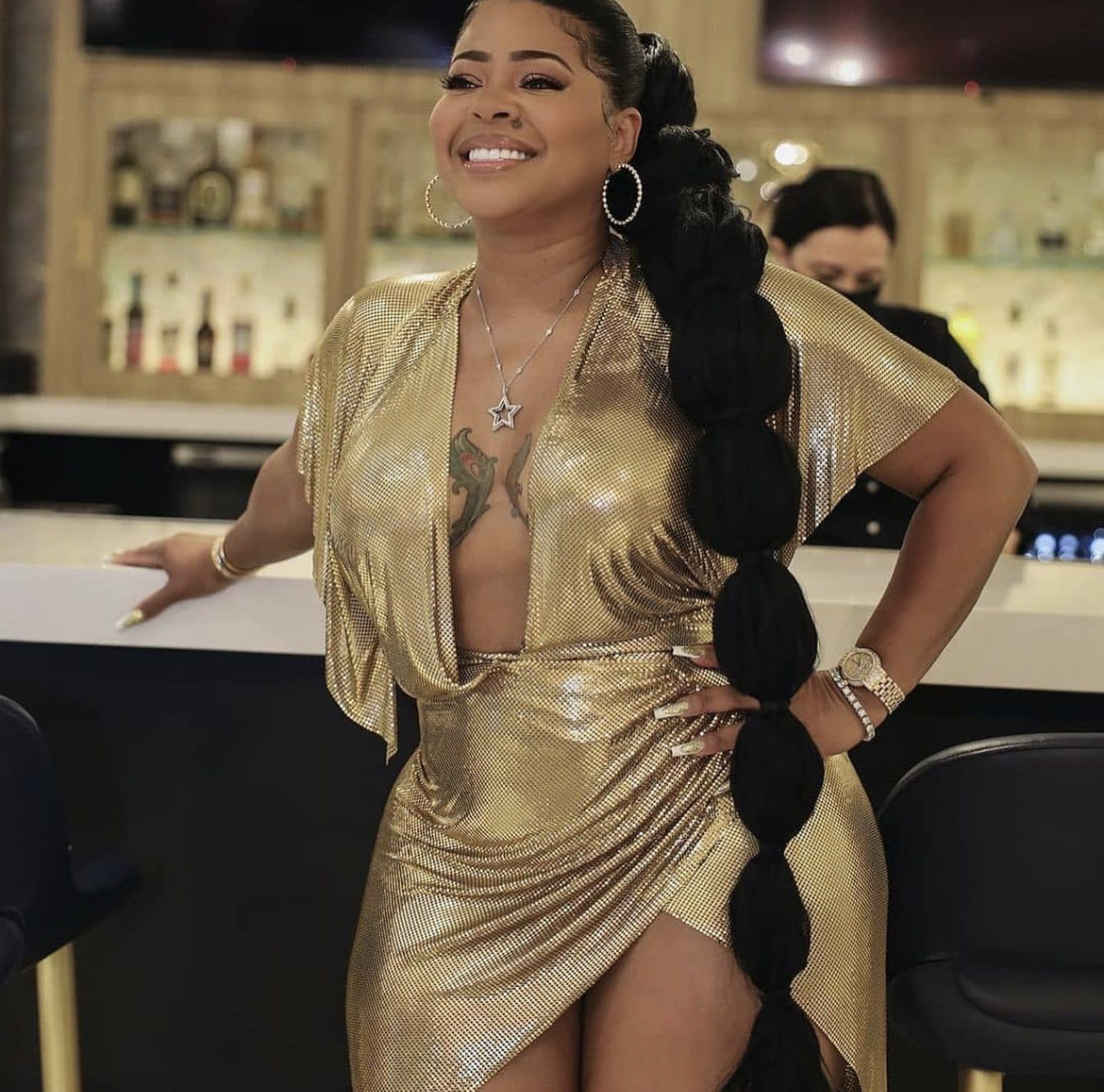 Chrissy Lampkin celebrated a milestone 50th birthday surrounded by family and friends at a private event. For this momentous birthday, she wore a $3,685 Fannie Schiavoni dress. Dubbed as the “Jennifer” dress, it is made entirely of 18k gold plated brass metal mesh fabric and features many attractive details that’ll definitely turn heads. Other notable features include the back cutout, plunging neckline and the wrap detail on the skirt aspect of the dress. She paired the look with a pair of crystal hoop earrings, a crystal star pendant necklace and gold bracelets.