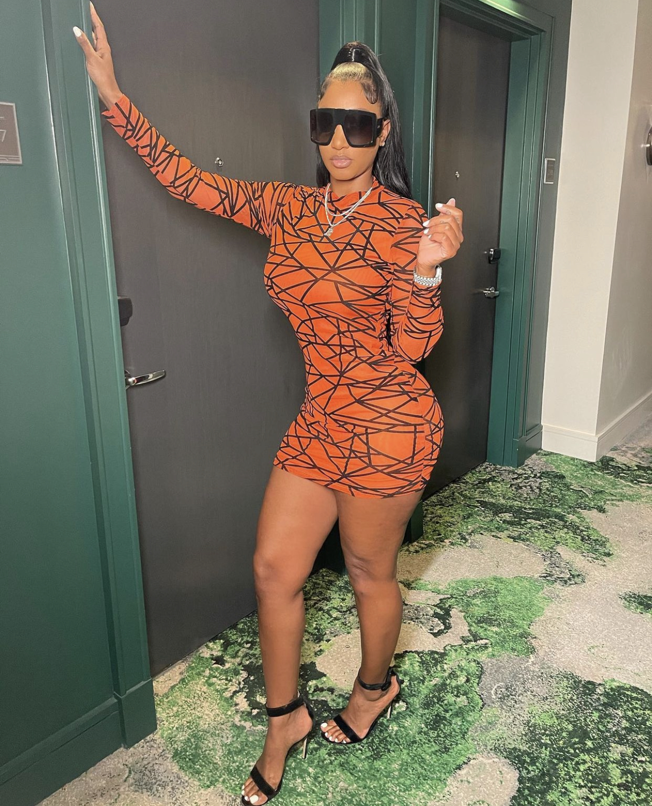Bernice Burgos is always gracing the ‘gram with her looks that accentuate her curvy figure. Recently, she was spotted on Instagram heading for what looked like a night out. For her look, she wore a rust orange mini dress from Fashion Nova.