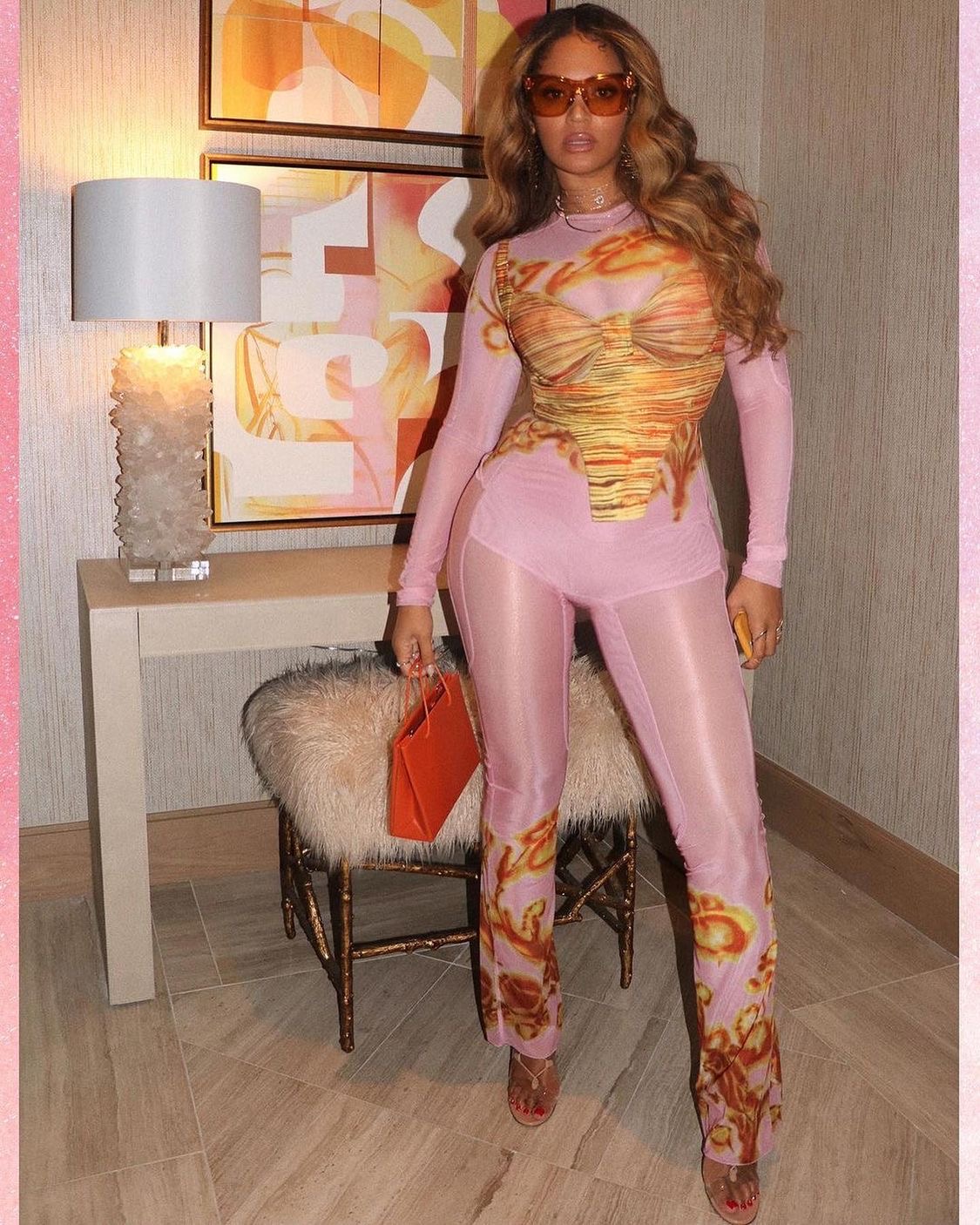 While Beyonce paired the top with $400 matching pants, a $515 Charlotte Knowles corset, Aquazzura Milos heels, Balmain sunglasses, and a $1,734 Medea Sisters bag (styled by Zerina Akers)….