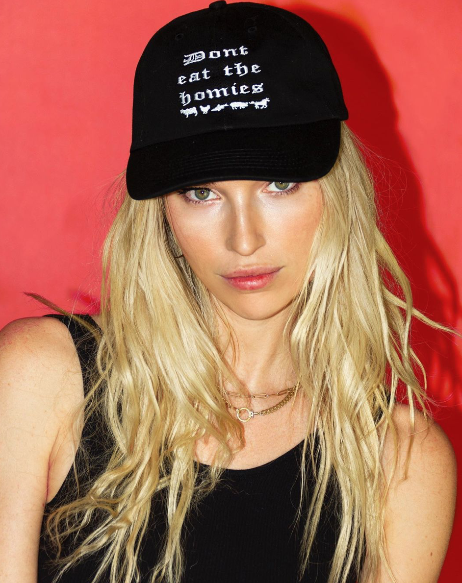 When Jordyn started the line, she thought of it more as a fun hobby for her and vegan friends to wear around Los Angeles. However, as more and more people took a liking to the brand, Jordyn decided to turn Don’t Eat The Homies into a full line of street wear that is inclusive to everyone. “At first, it wasn’t my intention to start a streetwear brand. I just made hoodies for me and my friends that said, “Don’t Eat the Homies” and thought we could wear them around LA as a form of raising awareness for animals in a cool way. But then, more and more people started asking for them, so I started making and selling the hoodies. It just snowballed from there – however what motivates me to keep going with this brand is that I truly believe in a vegan future for our world. I believe that streetwear is an excellent way to get this message across and a really effective form of activism. I want to show the world how cool being vegan is,” Jordyn says.