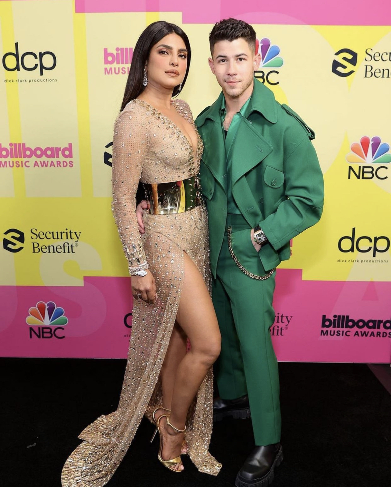 Another Fashion Bomb Couple moment was served to us by host Nick Jonas and his wife Priyanka Chopra. Priyanka wore a custom Dolce and Gabbana look, styled by Law Roach. Her custom ensemble was inspired by Dolce and Gabbana’s Fall 2007 and includes a gold plated belt complete with a chained padlock. The Fall 2007 collection has been spotted on Beyoncé and Naomi Campbell in the past. On the other hand, her husband Nicki Jonas opted for a green Fendi look from the brand’s Fall/Winter 2021 ready-to-wear collection.