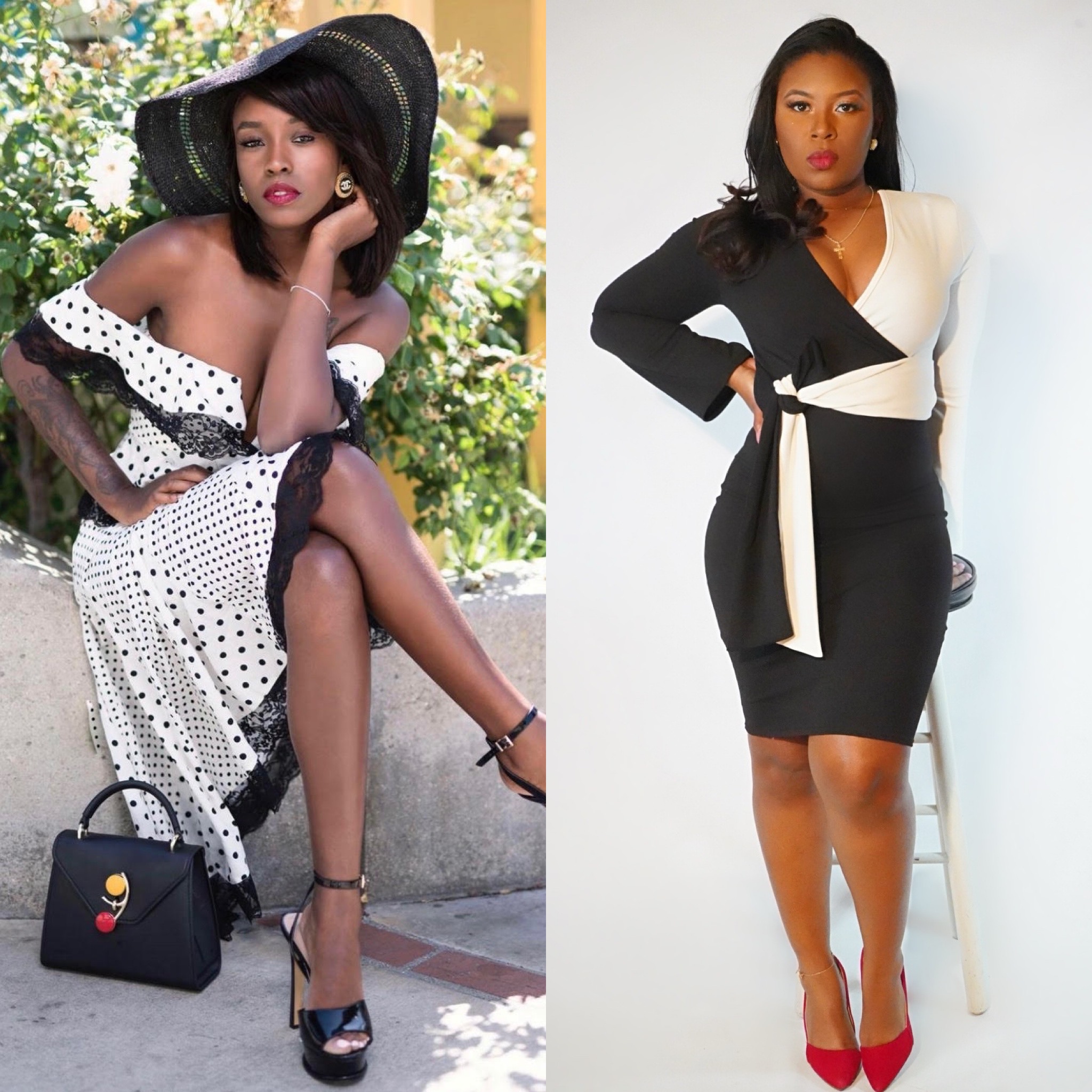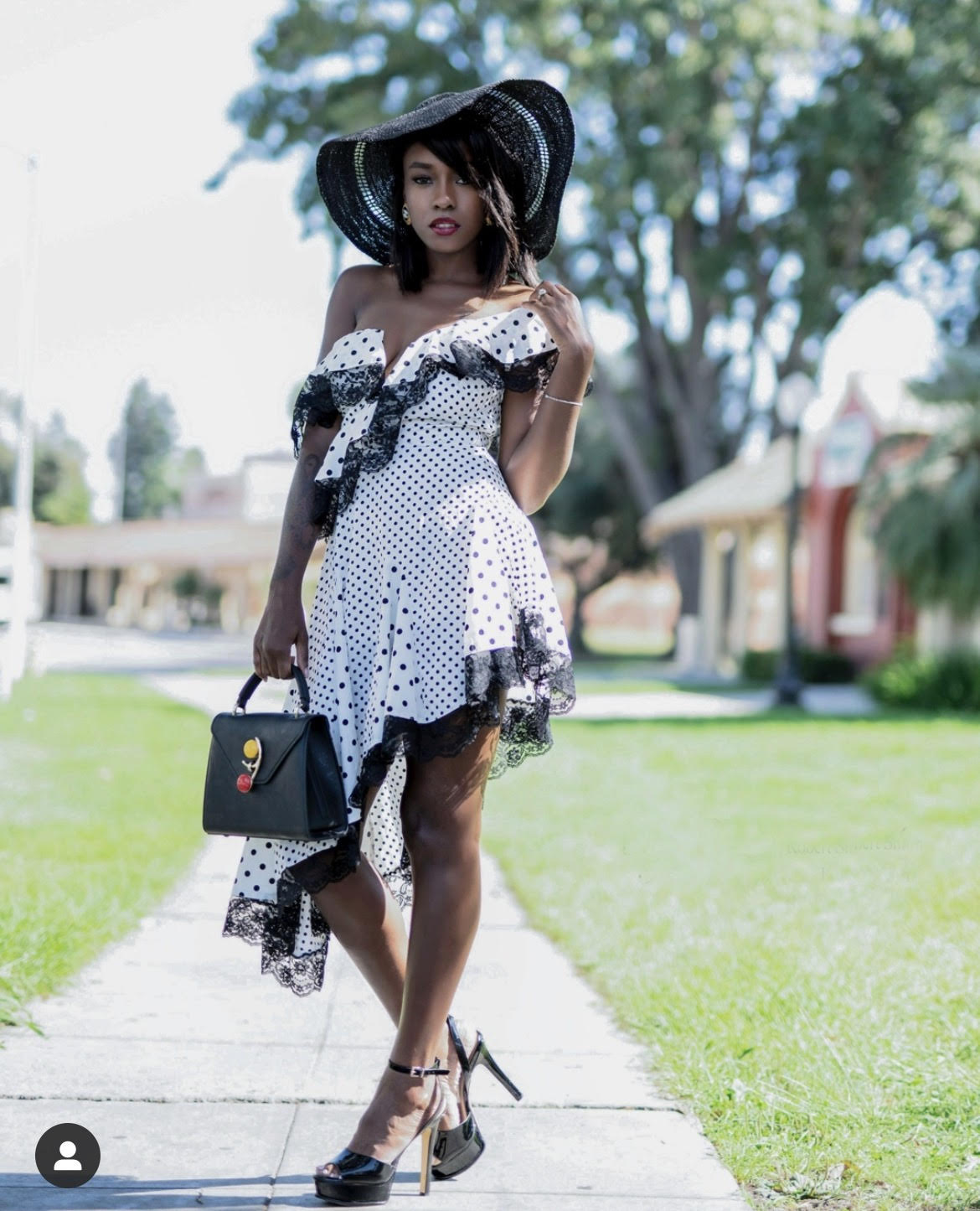 In second place, Martina (@martinaaharris) snags the win! The wardrobe stylist also went with a classy approach to her look rocking the “Breakfast at Tiffany’s” polka dot dress from Pretty Boutique LA with vintage Chanel earrings, Baldi platform patent leather sandals, and a black floppy straw hat and handbag from her personal online boutique.